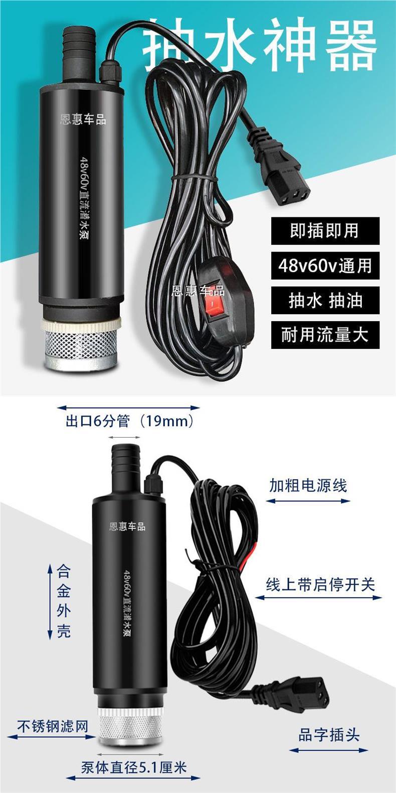 • 48v60v 검정색 펌프 전기 자동차 범용 [순수 구리] 펌프 + 5m 내한 수도관
