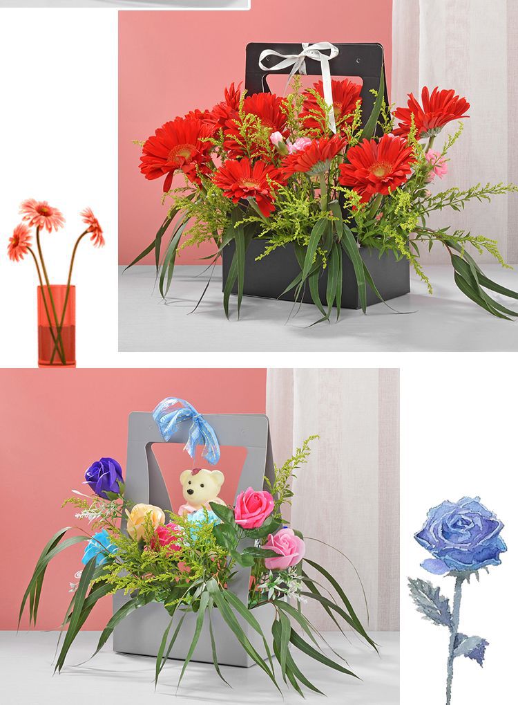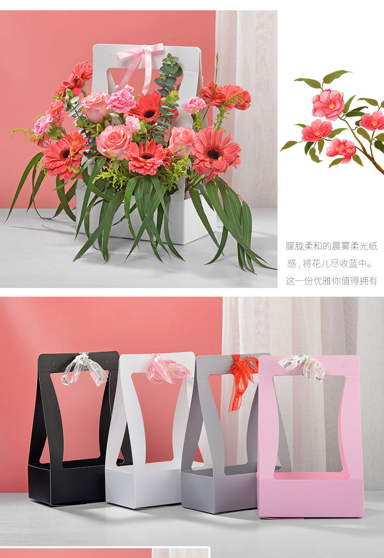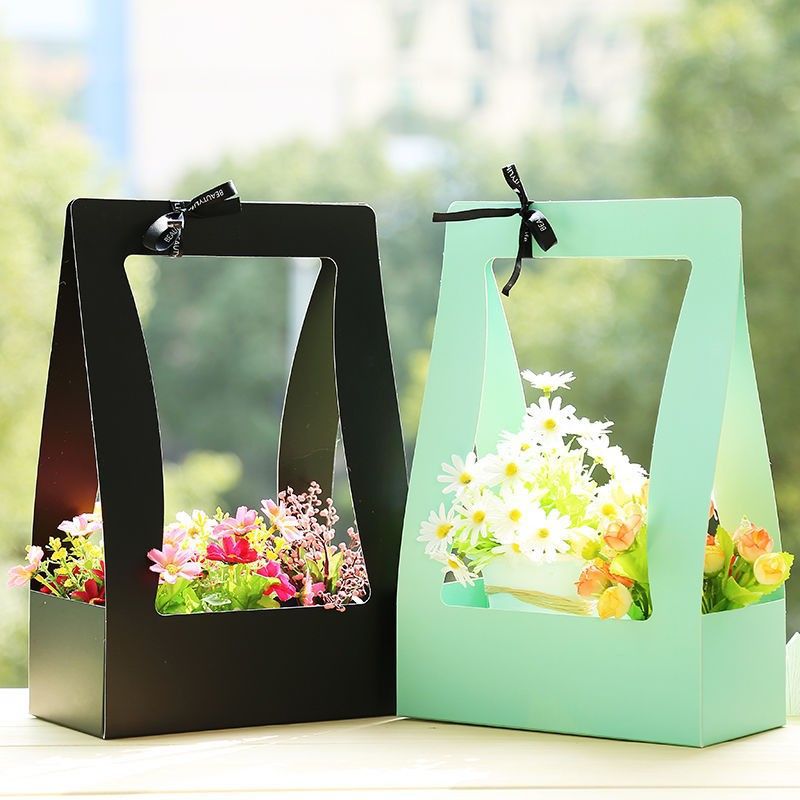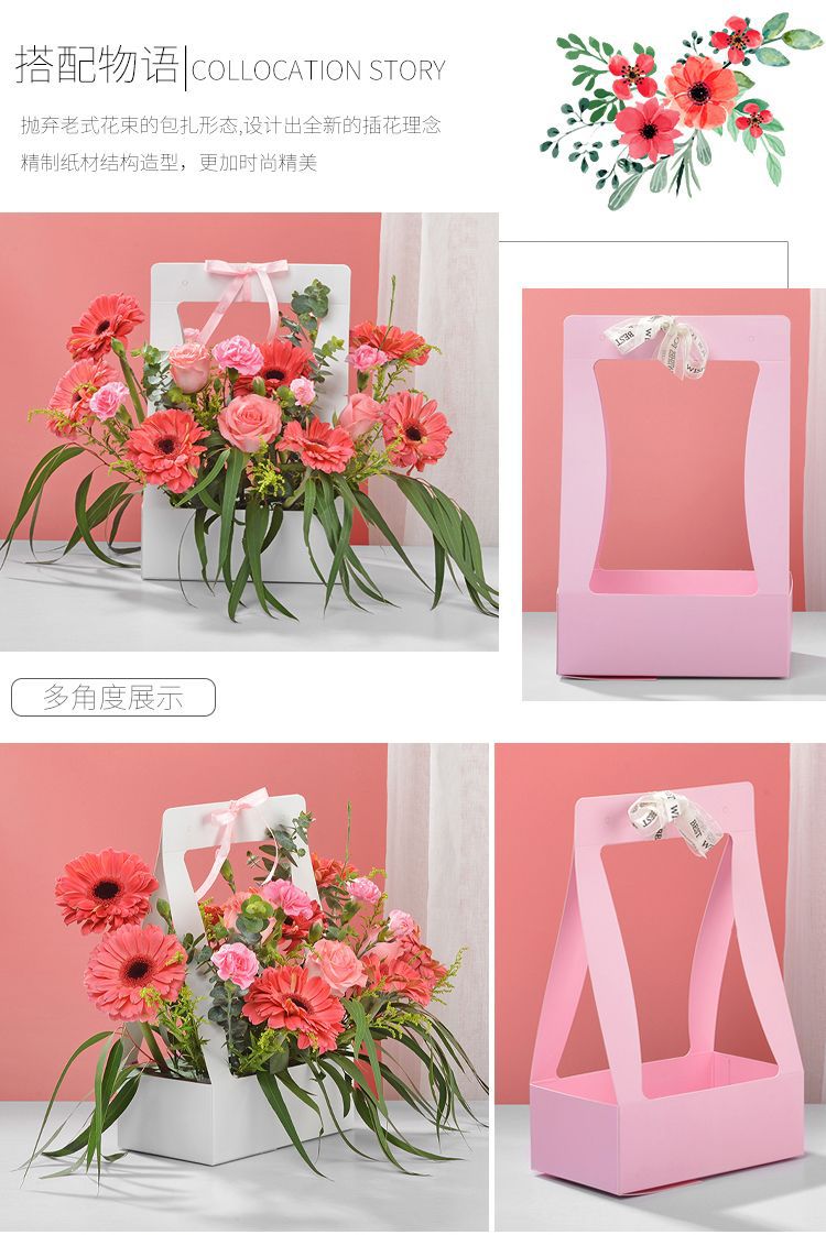 발렌타인 데이 종이 손으로 들고 꽃 바구니 방수 두꺼운 꽃 가게 용품 꽃 포장 선물 상자 핸드백 꽃 정리 플랫 런스토어 가기