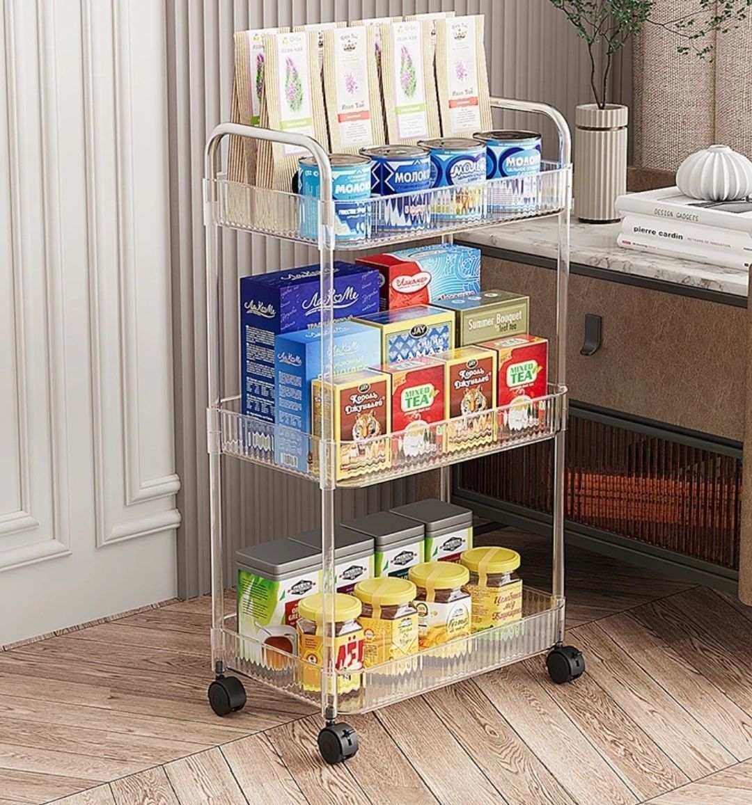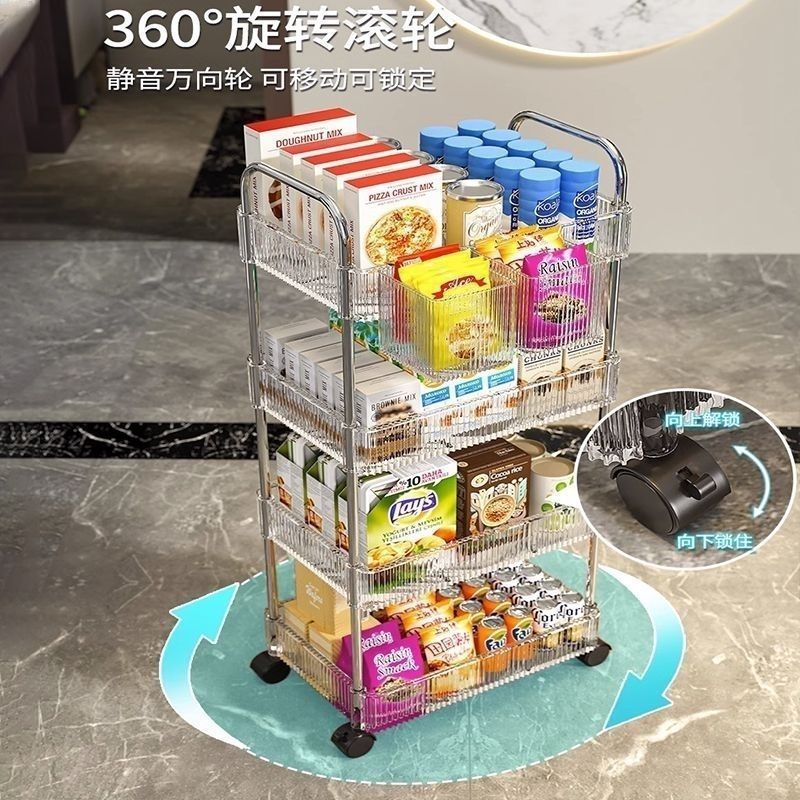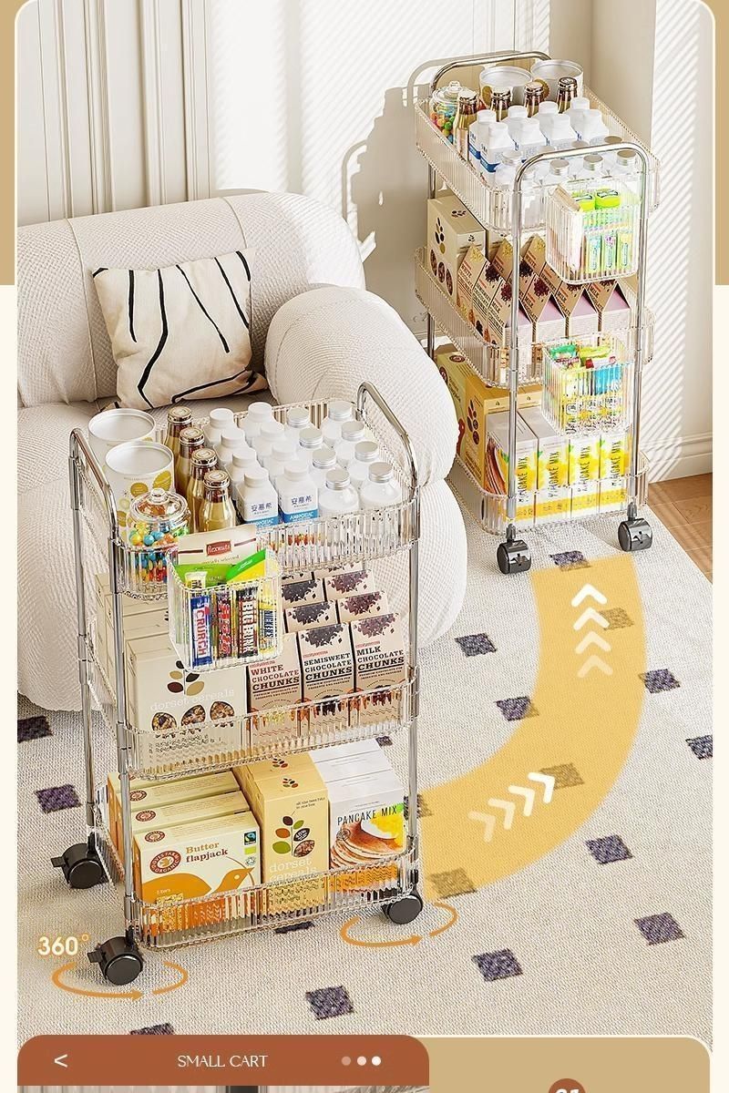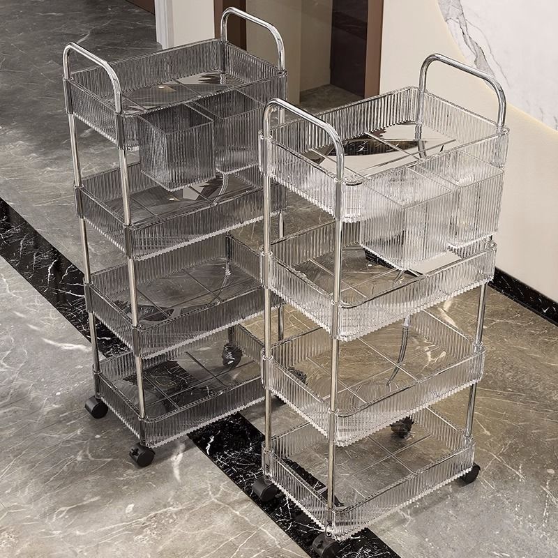 새로운 아크릴 투명 휠 트롤리 욕실 화장실 보관 랙 거실 북유럽 스타일 플로어 스탠딩 Huageng 컬렉션스토어 가기
