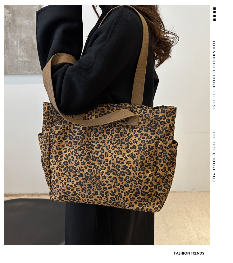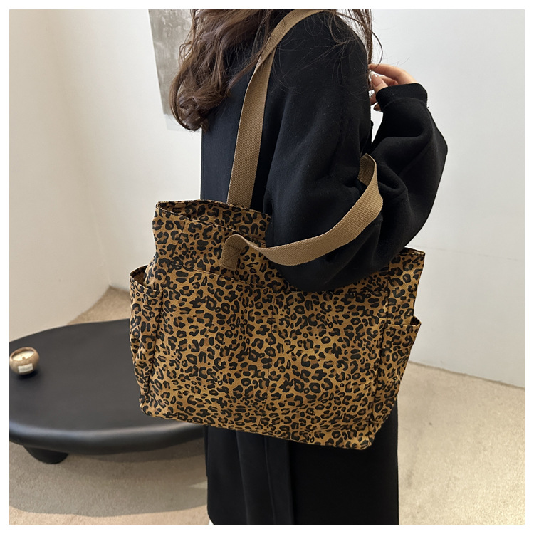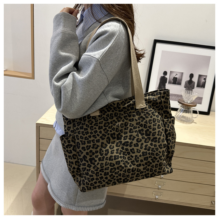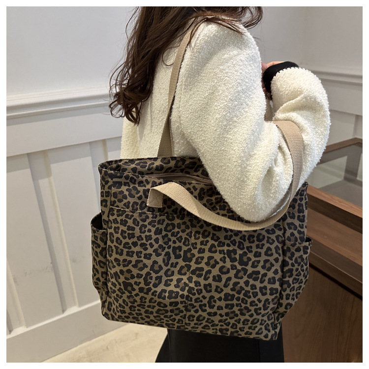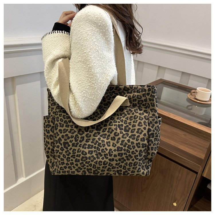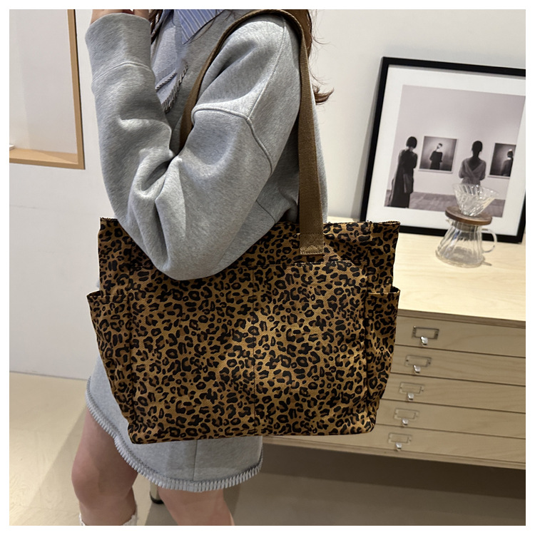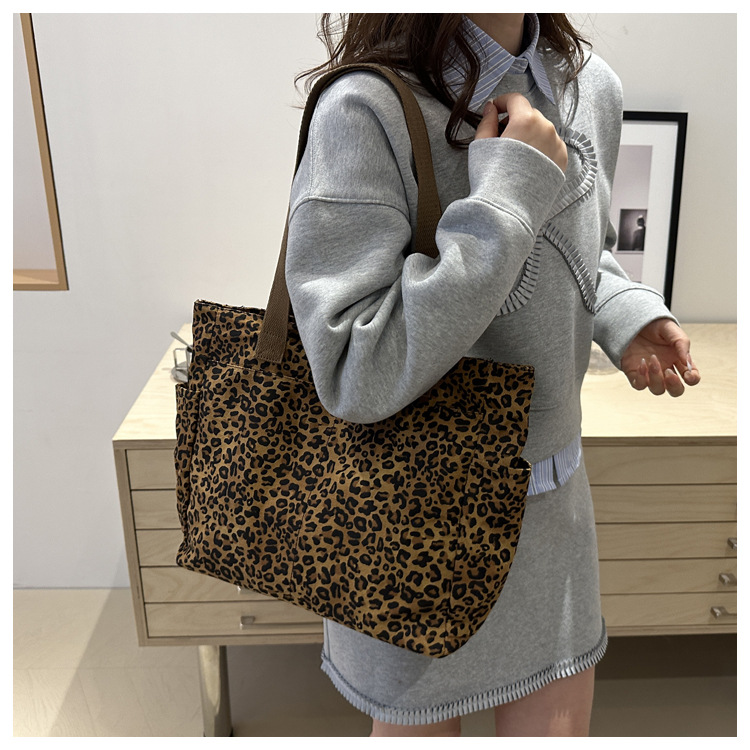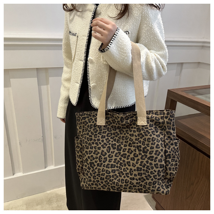 새로운 대용량 핸드 백 2024 가을과 겨울 패션 레오파드 숄더 백 토트 핸드 백스토어 가기