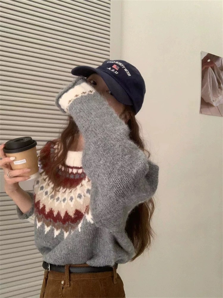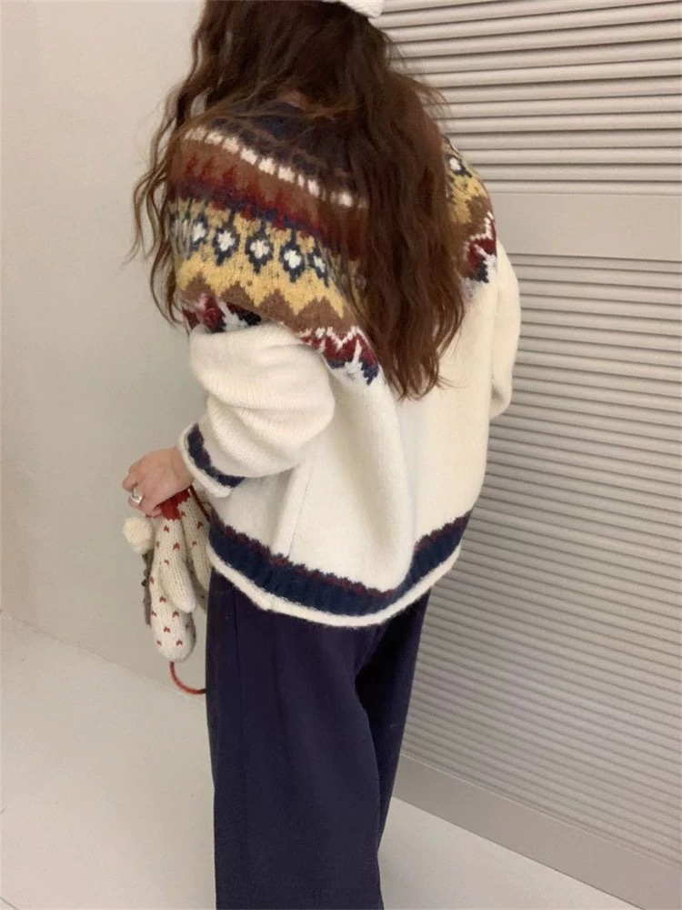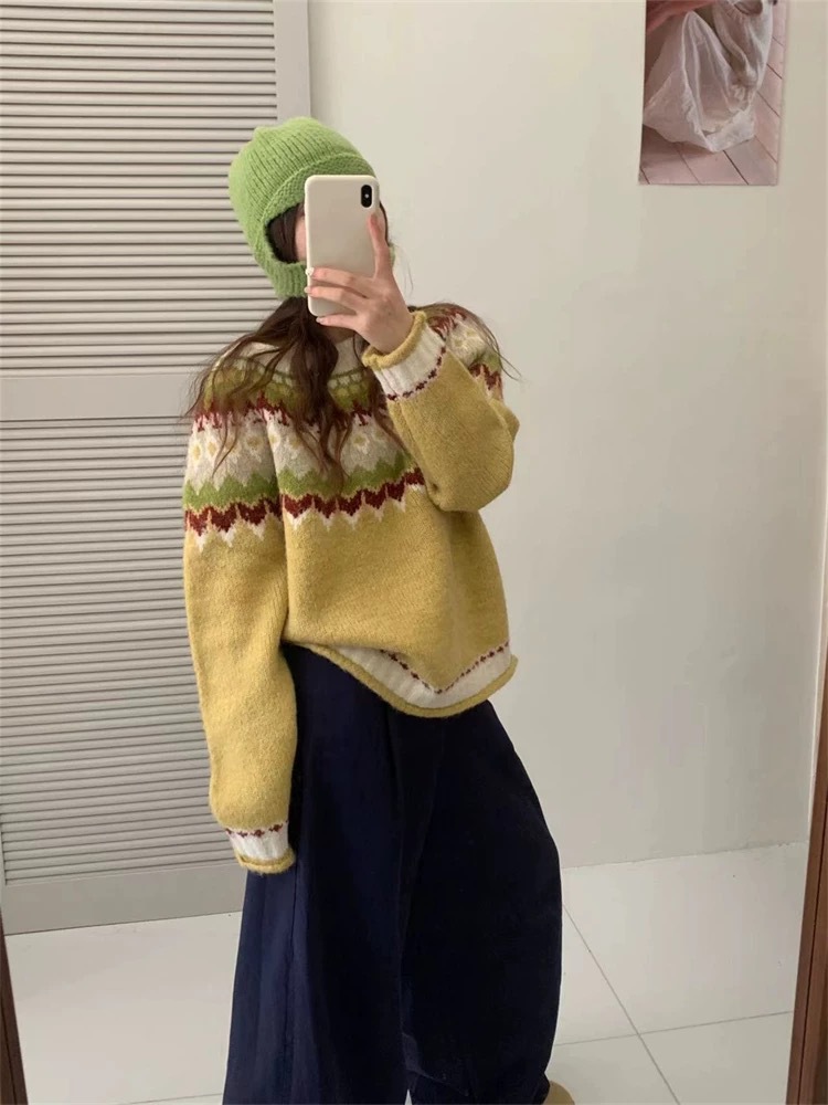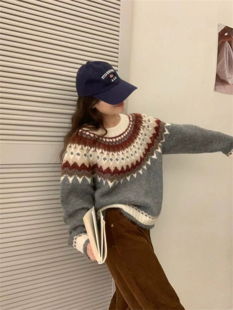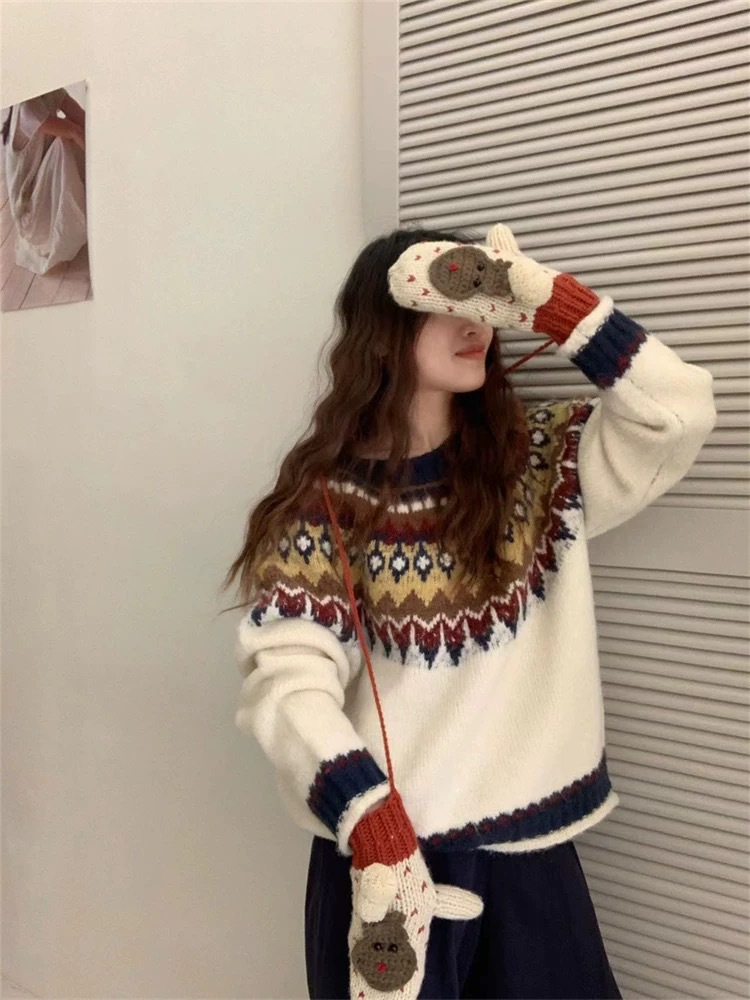 한국식 링지 페어랜드 자카드 풀오버 스웨터 2024 가을과 겨울 새로운 두꺼운 크리스마스 스웨터 소프트 왁스 레트로스토어 가기