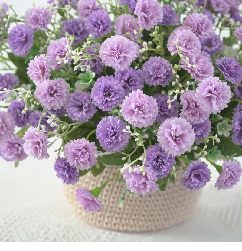 꽃 작은 라일락 카네이션 홈 식탁 장식 가짜 꽃 피크닉 꽃 바구니 창
