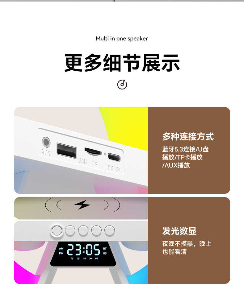 X63 국경 폭발 큰 G 블루투스 스피커 시계 다기능 무선 야간 조명 휴대 전화 무선 오디오 올인원 기계