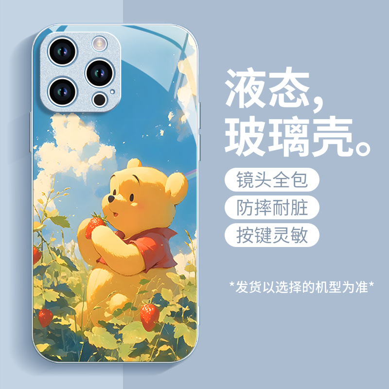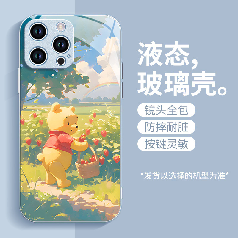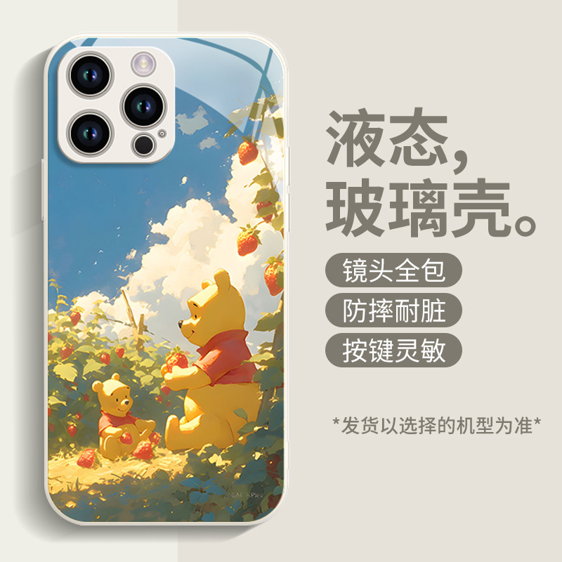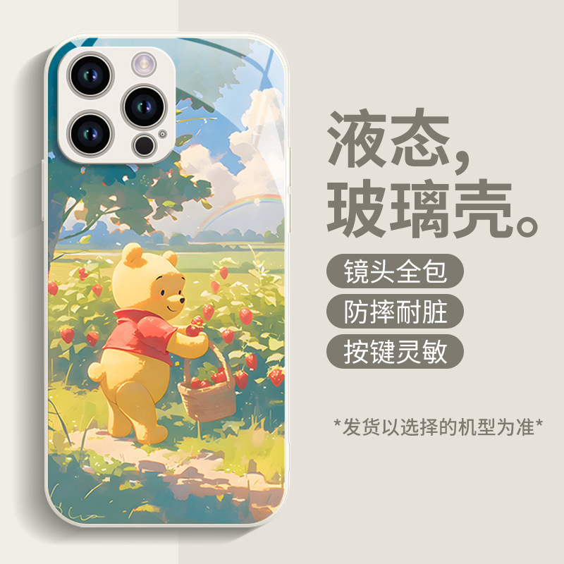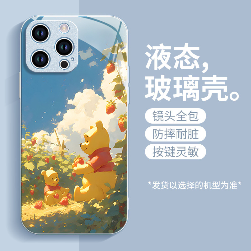 딸기 푸우 전화 케이스 애플 16 플러스 아이폰 새로운 15pro 포함 13 미니 액체 12