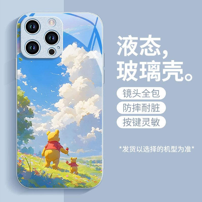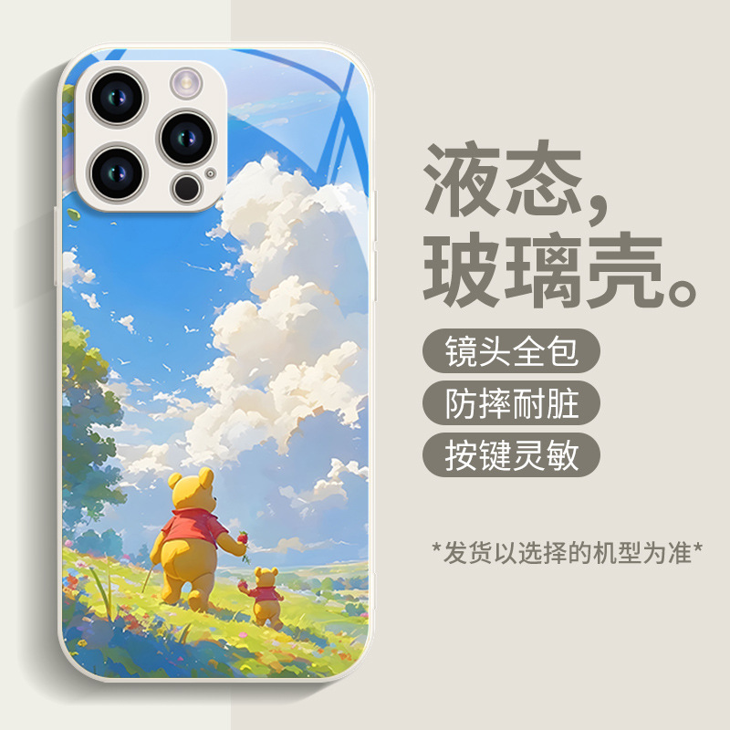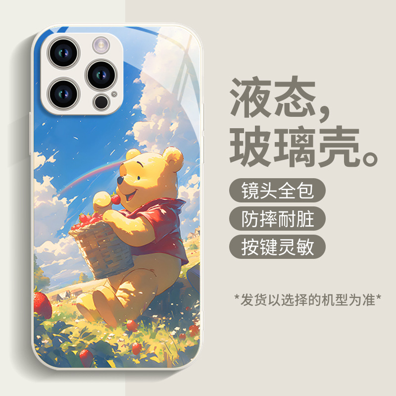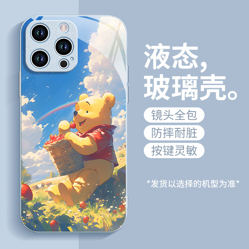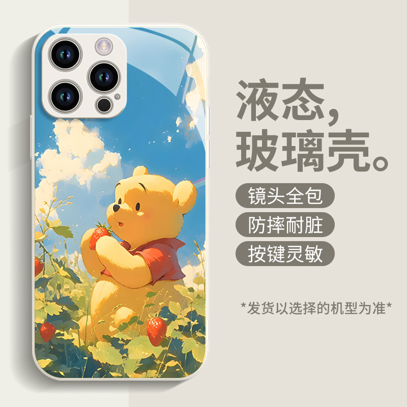 딸기 푸우 전화 케이스 애플 16 플러스 아이폰 새로운 15pro 포함 13 미니 액체 12