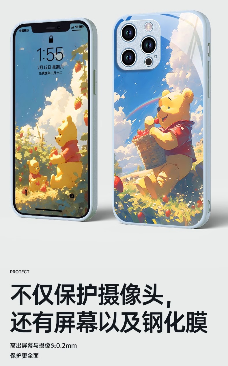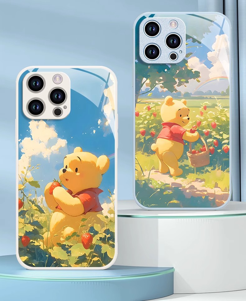 딸기 푸우 전화 케이스 애플 16 플러스 아이폰 새로운 15pro 포함 13 미니 액체 12스토어 가기