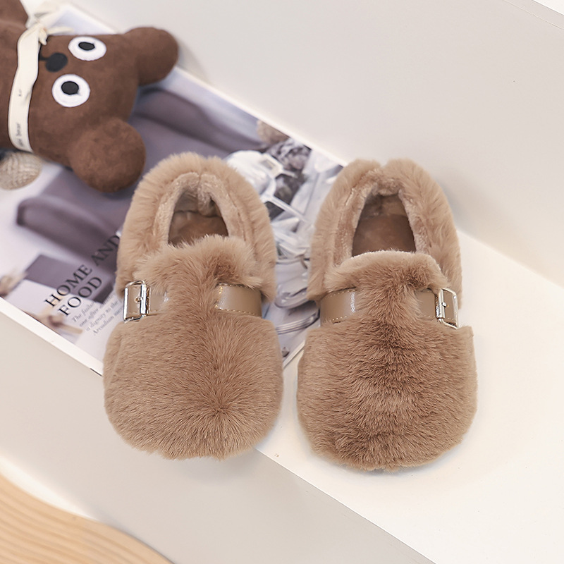 어린이 솔리드 컬러 푹신한 신발 2024 겨울 소녀 중소 어린이 따뜻한 신발 어린 소녀 아웃웨어 패션 콩 신발스토어 가기