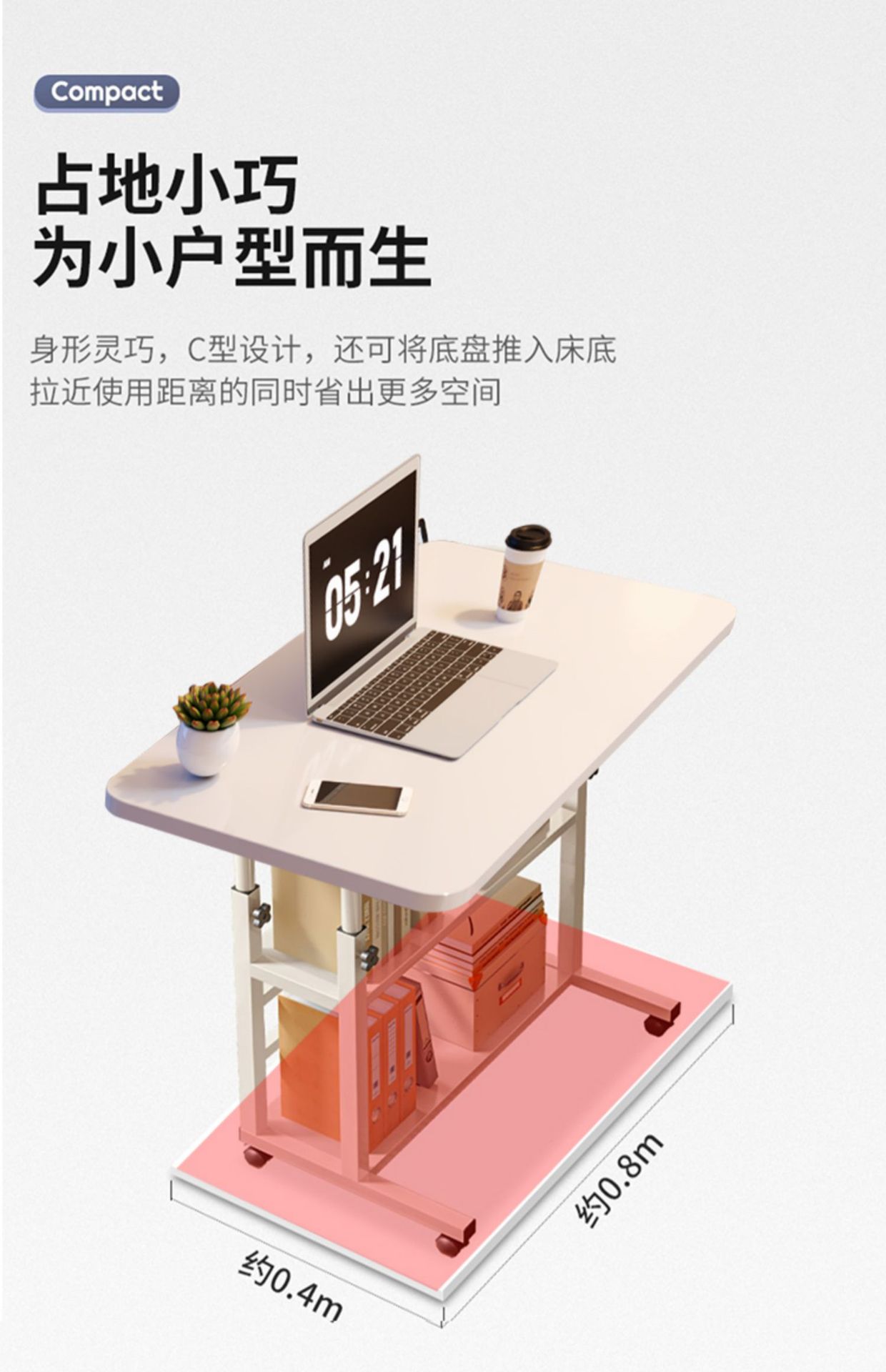 • 대형 바퀴 달린 데스크탑 [80*40] 펄 화이트 [업그레이드된 스틸 프레임]