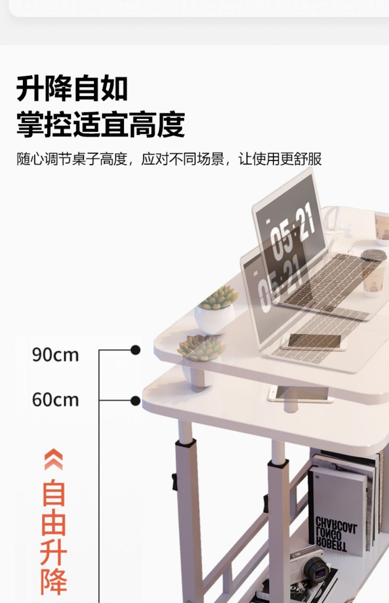 • 이동식 높이 조절 책상 [80*40] 화이트 상판 회전형