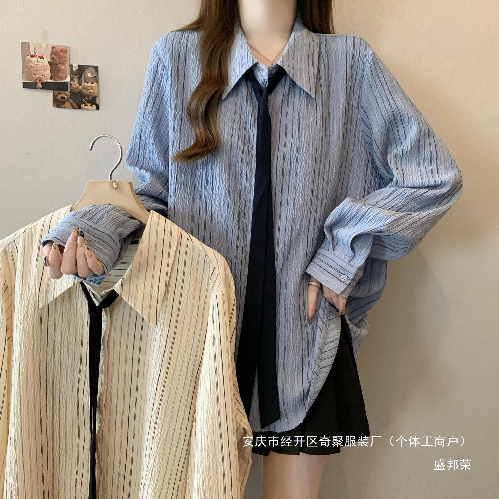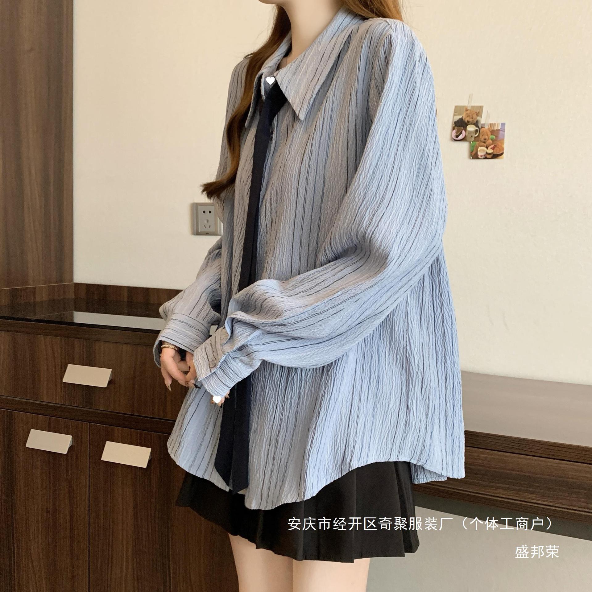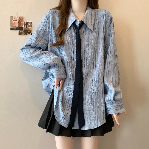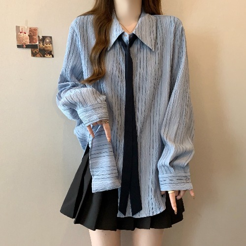 • 블루 스트라이프 (버전) [기질 쉬폰 탑/올해 인기 셔츠/올해 인기 예쁜 셔츠/셔츠 2024 신작 여성 가을]