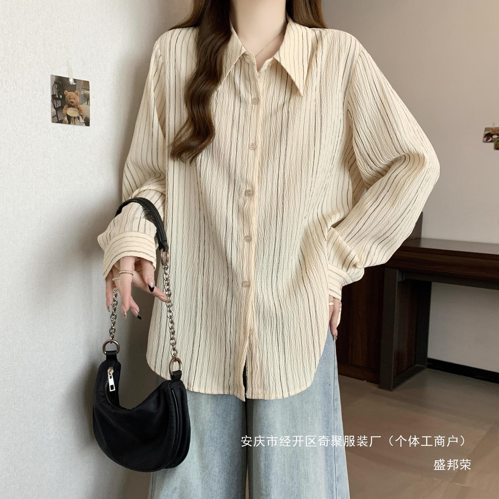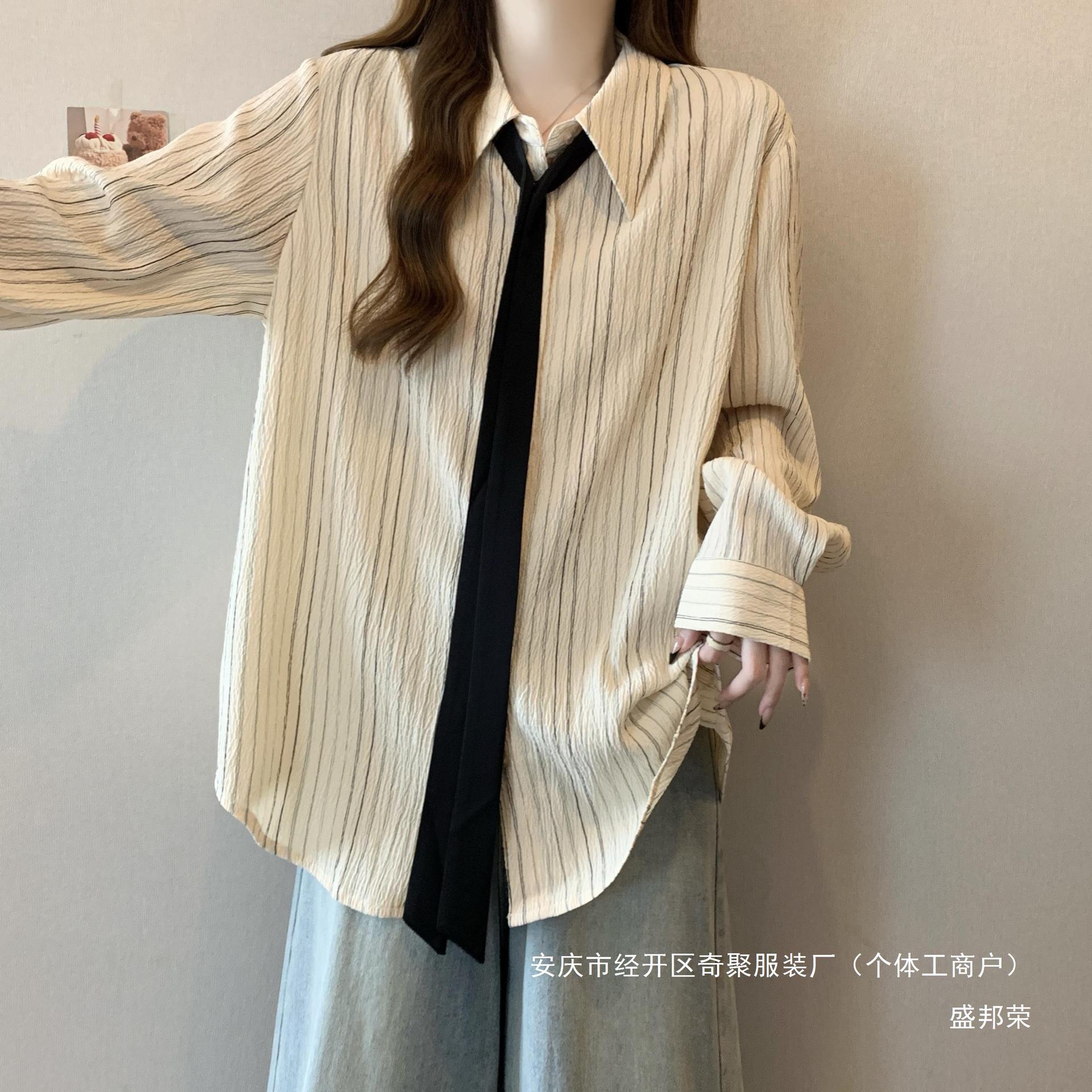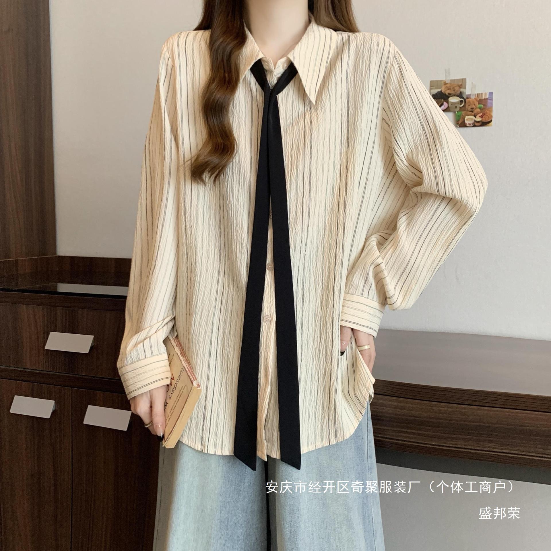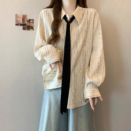 • 베이지 스트라이프 [기질 쉬폰탑/올해 인기 셔츠/올해 인기 예쁜 셔츠/셔츠 2024 신작 여성 가을]