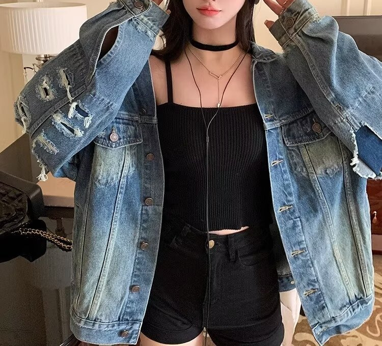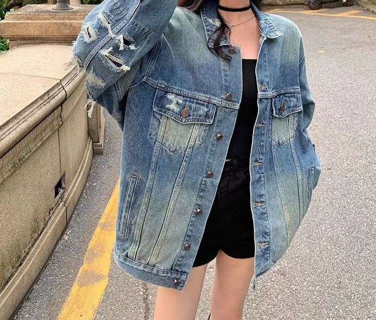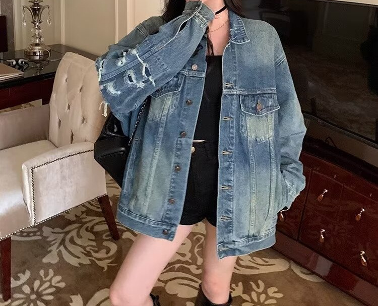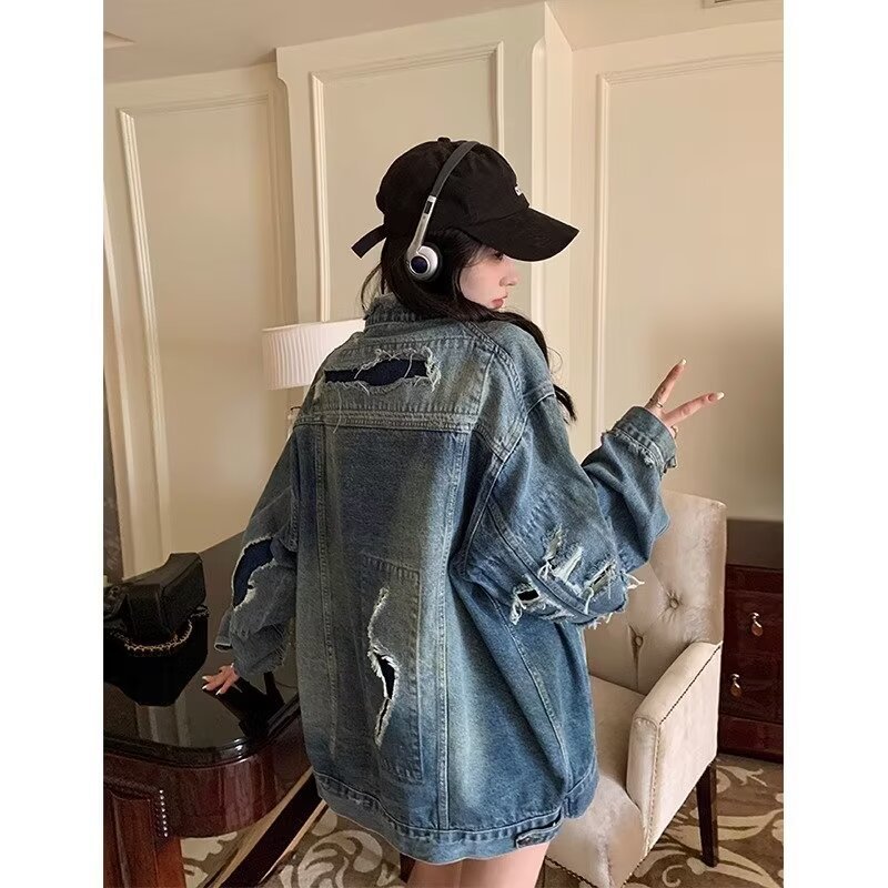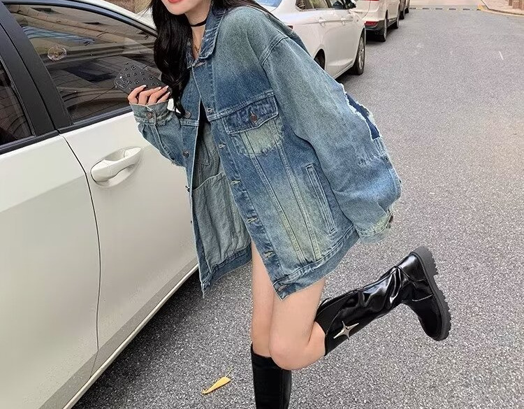 미국 레트로 데님 재킷 여자 봄과 가을 2024 새로운 느슨한 올매치 세척 카디건 탑 트렌디스토어 가기
