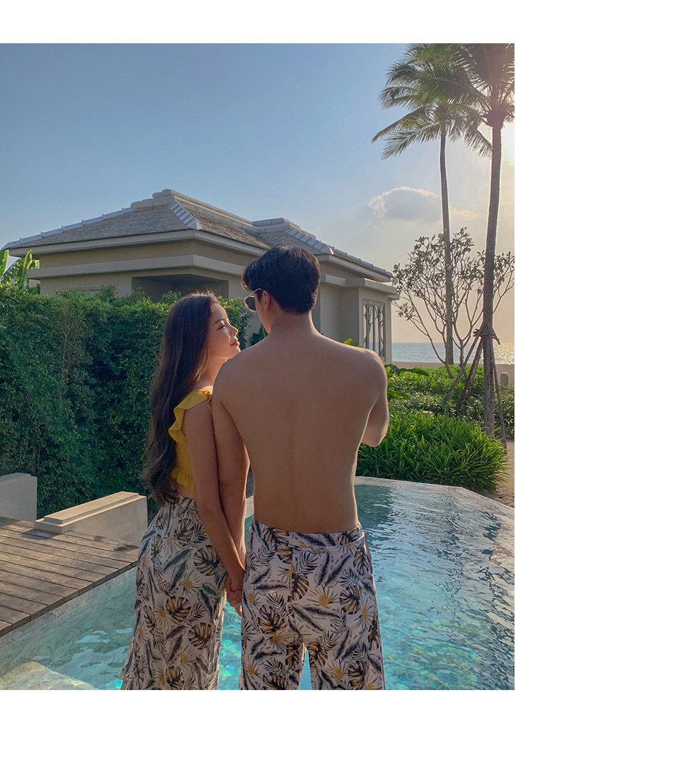 해변 바지 남자의 빠른 건조 느슨한 세트 바지 커플의 해변 휴가 수영 온천 바지