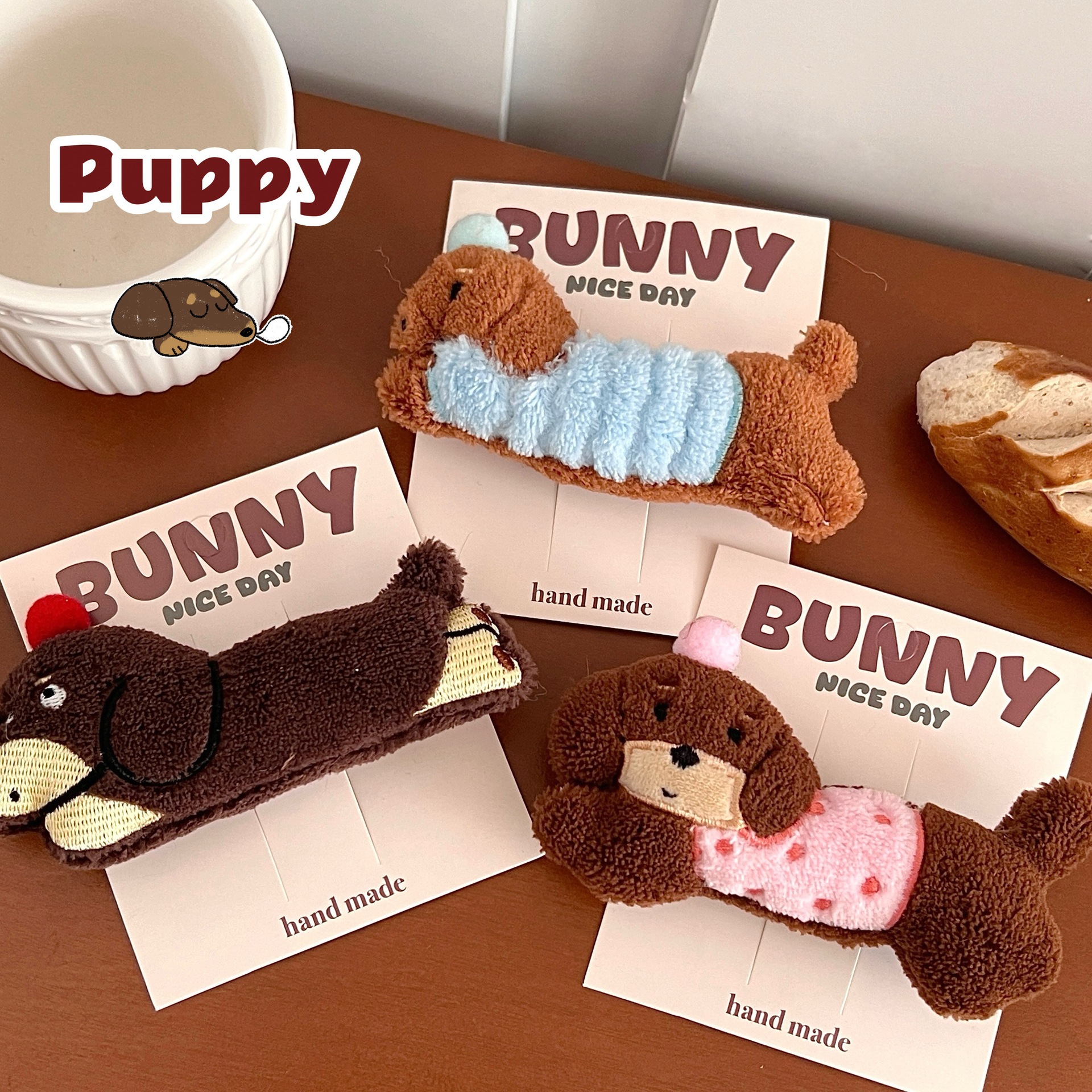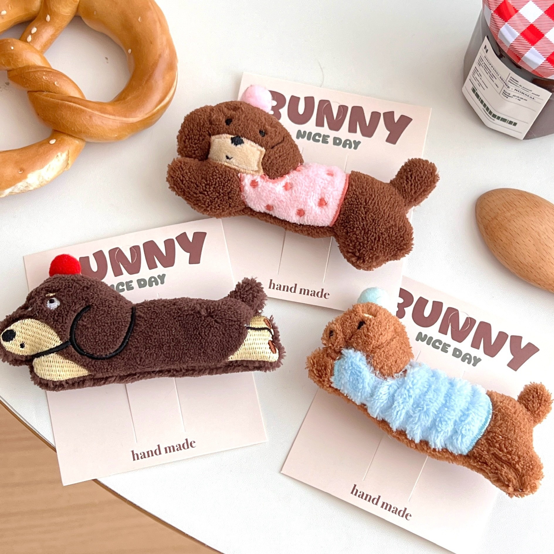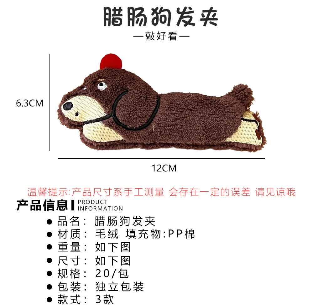 가을과 겨울 귀여운 만화 소시지 강아지 인형 머리핀 소녀 하트 사이드 앞머리 클립 오리 지폐 클립 올 매치 헤어 액세서리
