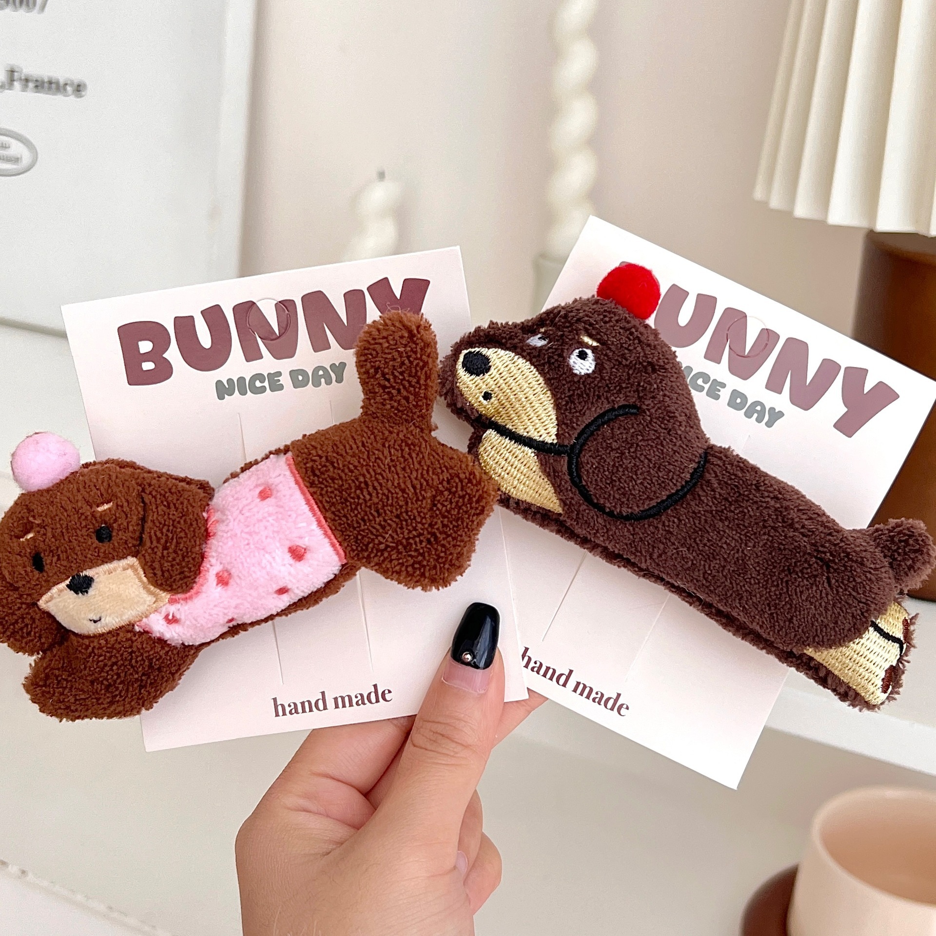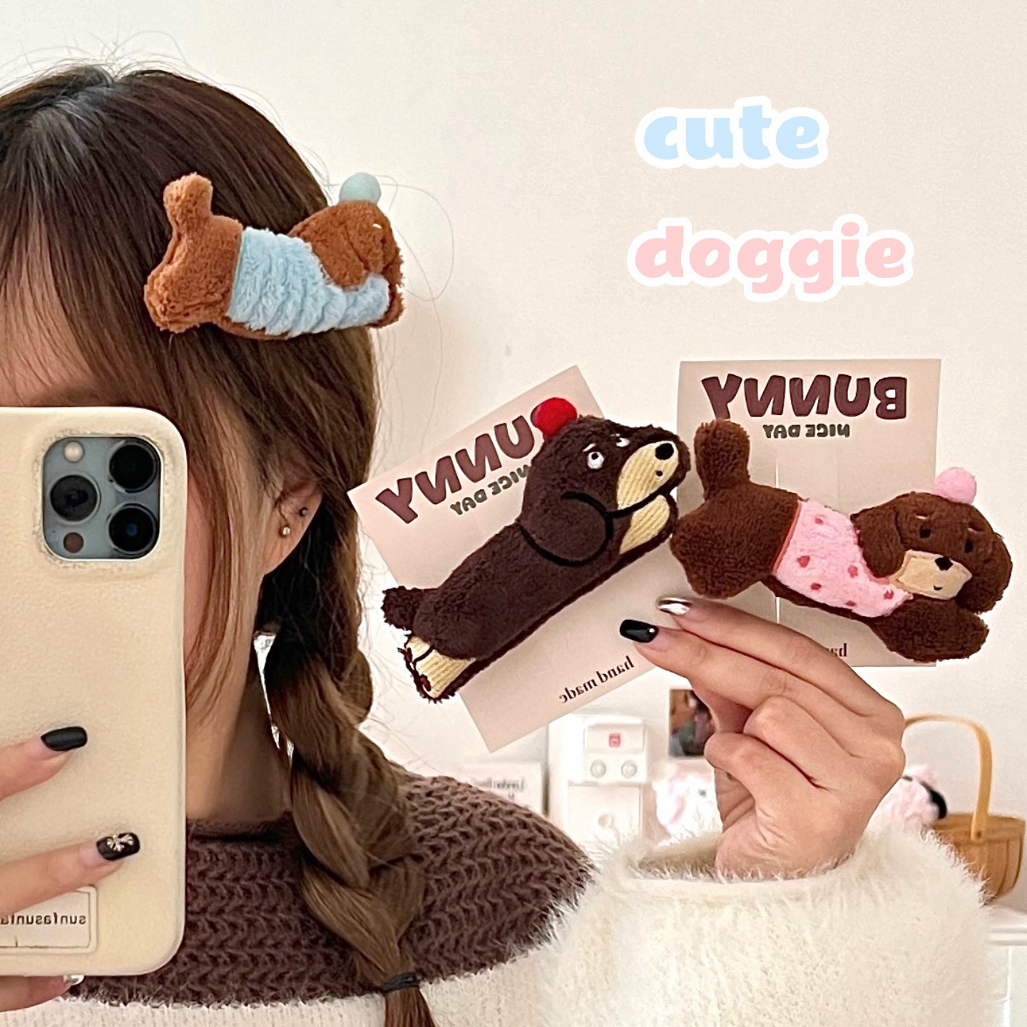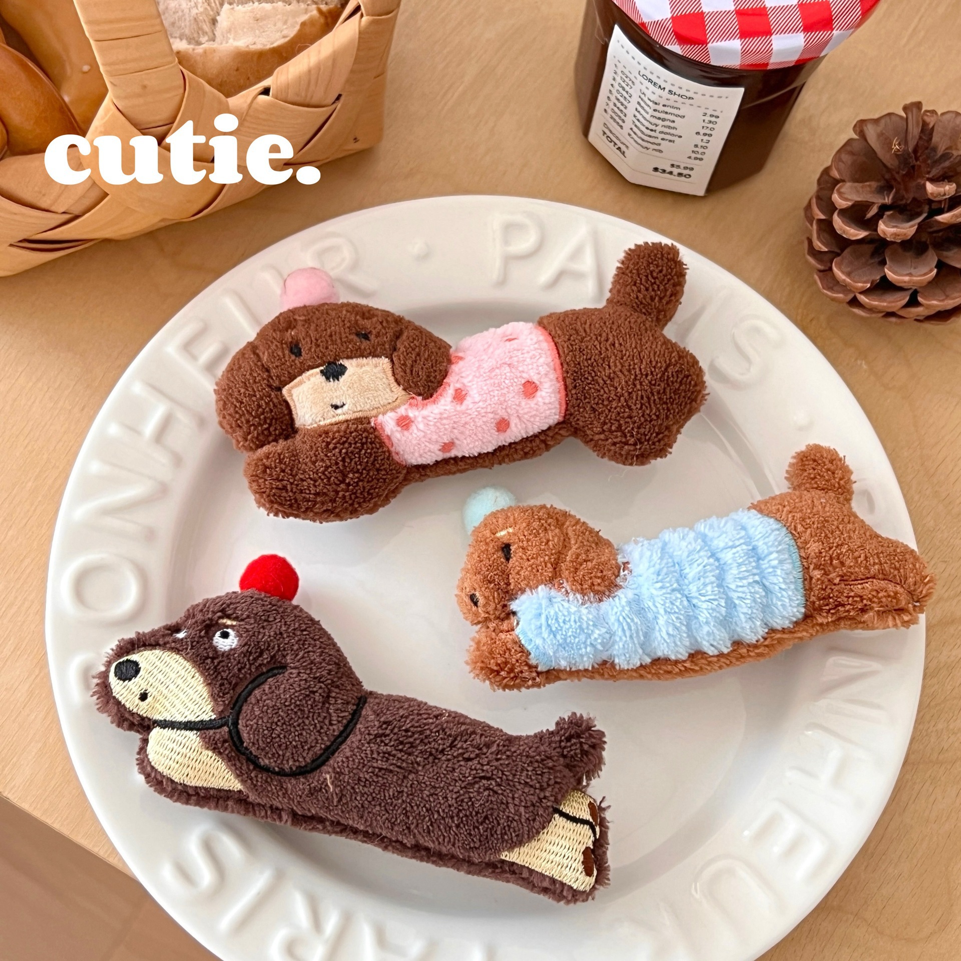 가을과 겨울 귀여운 만화 소시지 강아지 인형 머리핀 소녀 하트 사이드 앞머리 클립 오리 지폐 클립 올 매치 헤어 액세서리