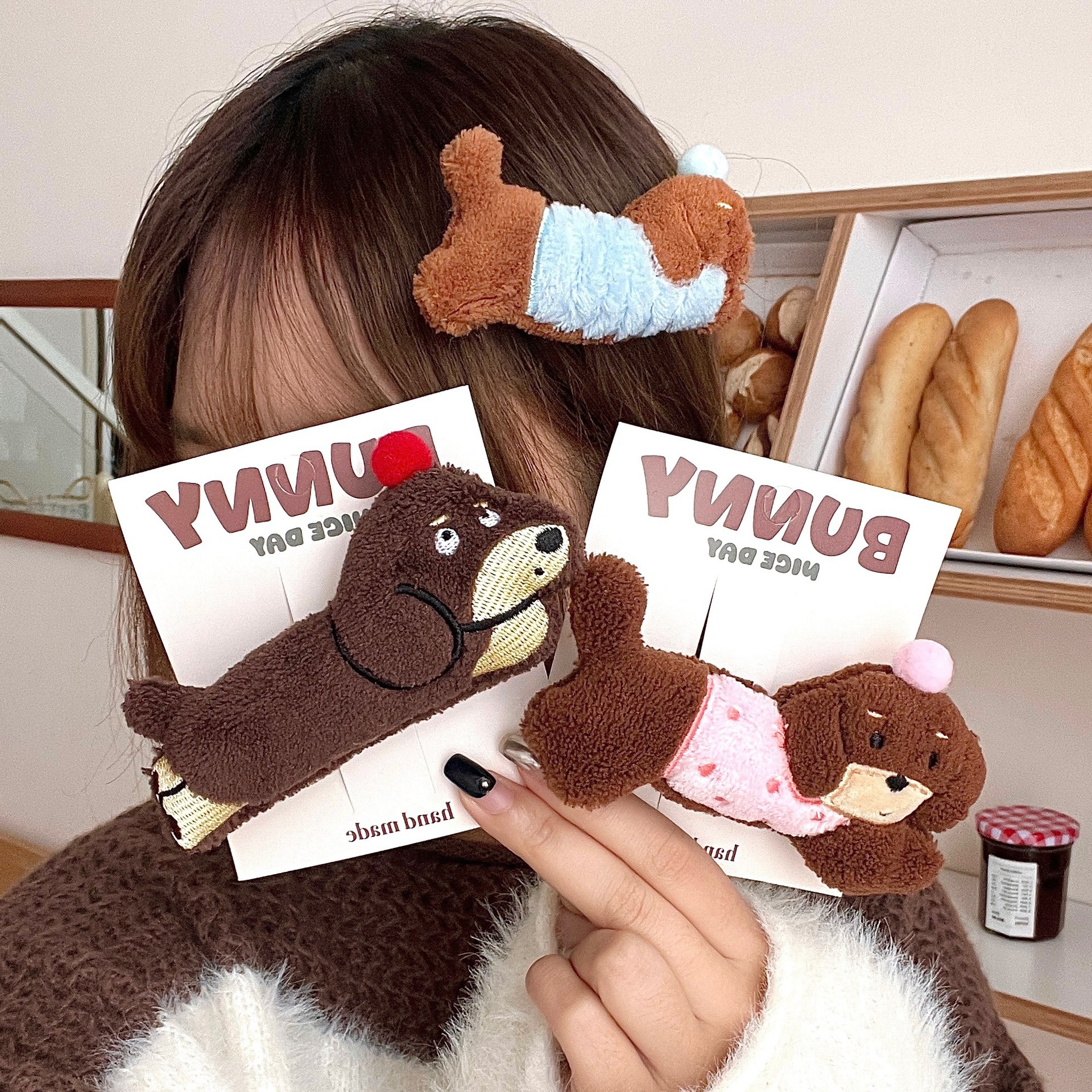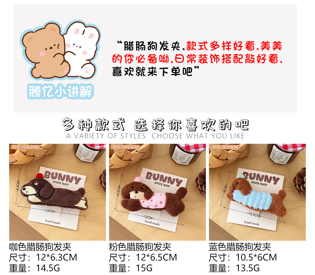 가을과 겨울 귀여운 만화 소시지 강아지 인형 머리핀 소녀 하트 사이드 앞머리 클립 오리 지폐 클립 올 매치 헤어 액세서리스토어 가기
