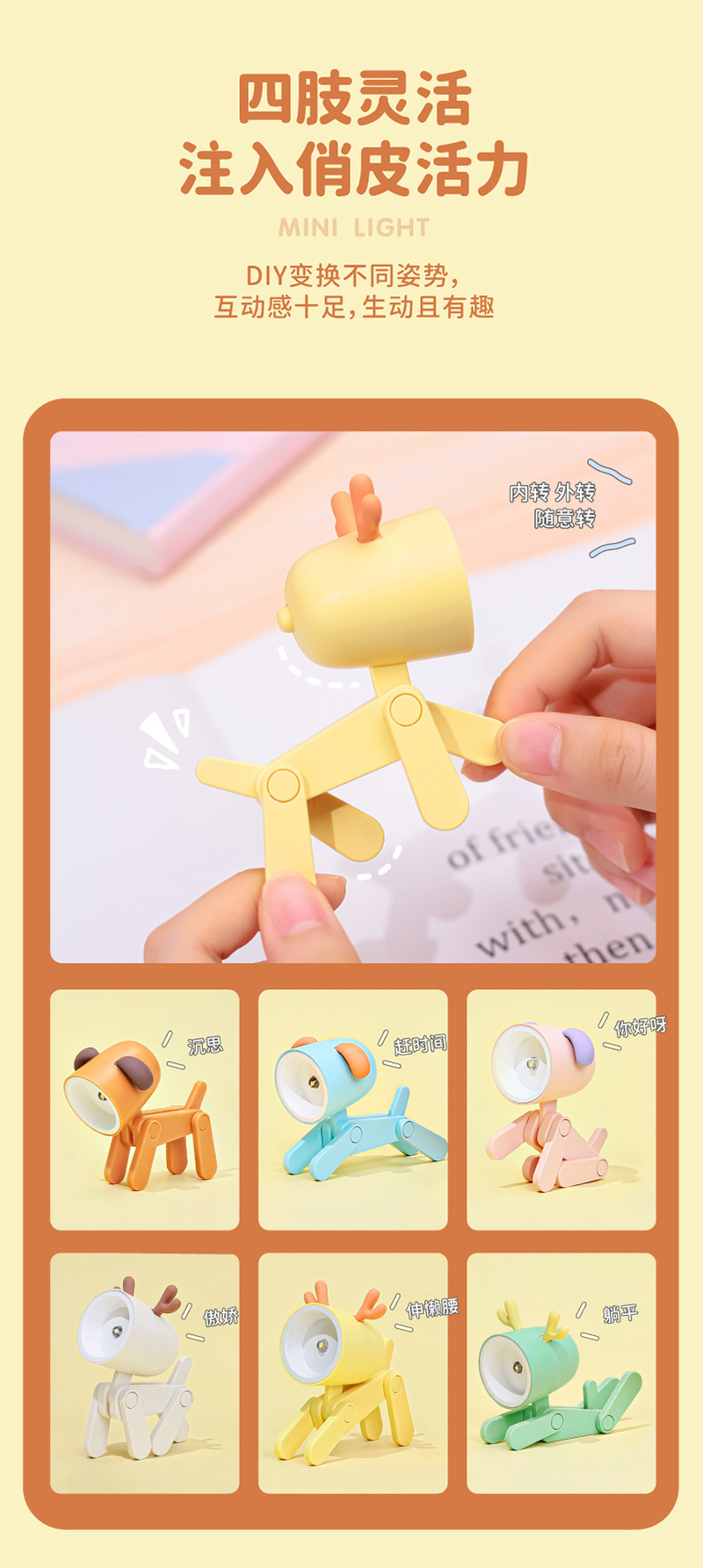야간 조명 국경 시리즈 귀여운 애완 동물 재미 크리 에이 티브 사슴 데스크탑 작은 장식품 휴대 전화 홀더 사무실 침실 램프