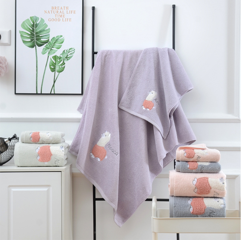알파카 타월면 가정용 면화 세척 수건 목욕 타월 도매 흡수성 두꺼운 수건 자수 린트스토어 가기