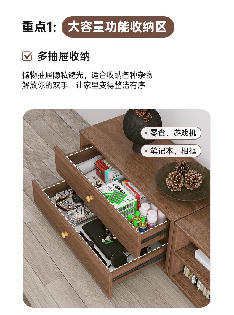 단단한 나무 TV 내각 거실 2024 새로운 가구 조합 내각 작은 아파트 저장 내각 통합 TV 내각스토어 가기