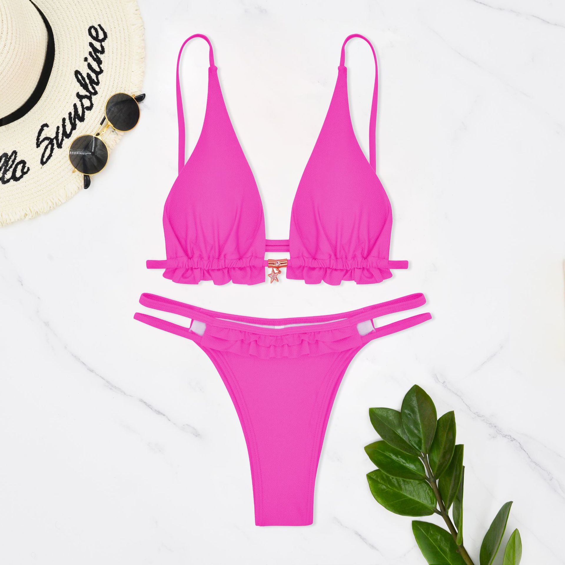 미라클 의류 2025 새로운 수영복 여성 하이 섹시 게더 비키니 유럽과 미국 대외 무역 국경 특별 5013