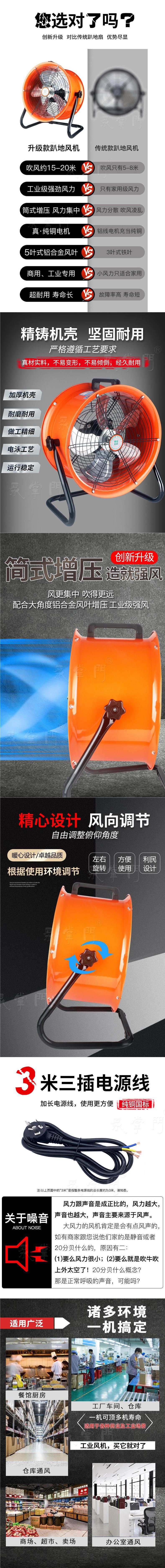 산업용 전기 팬 대형 바람 바닥 팬 팬 팬 강한 바람 높은 전력 건설 현장 바닥 팬 실린더 팬 강한