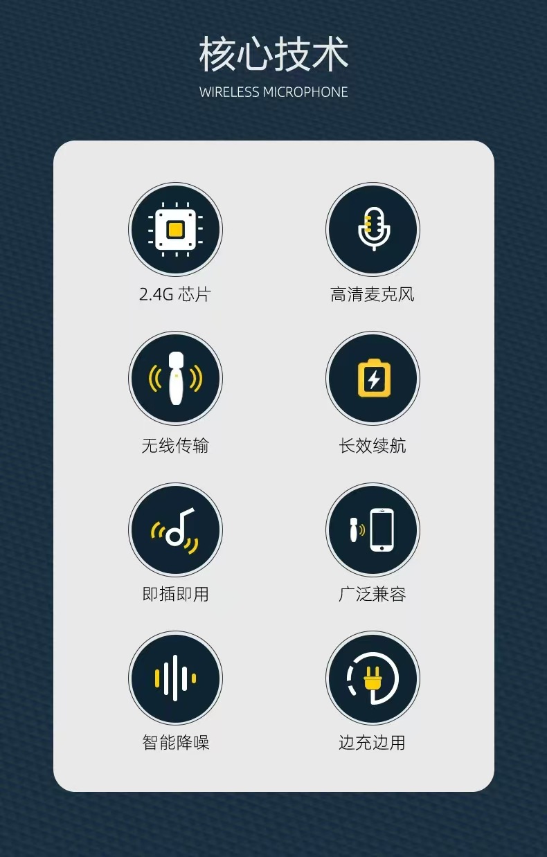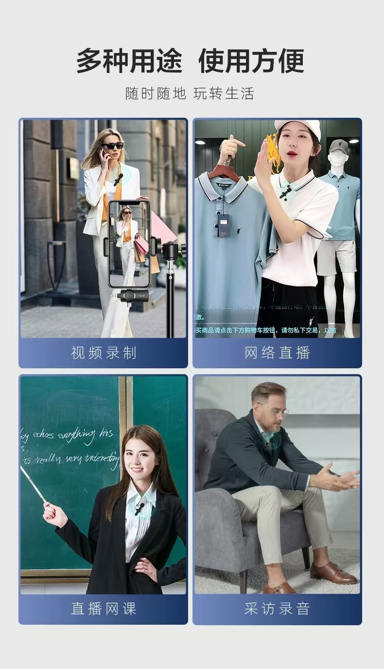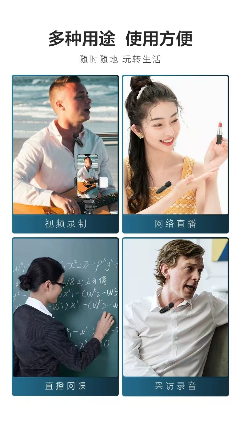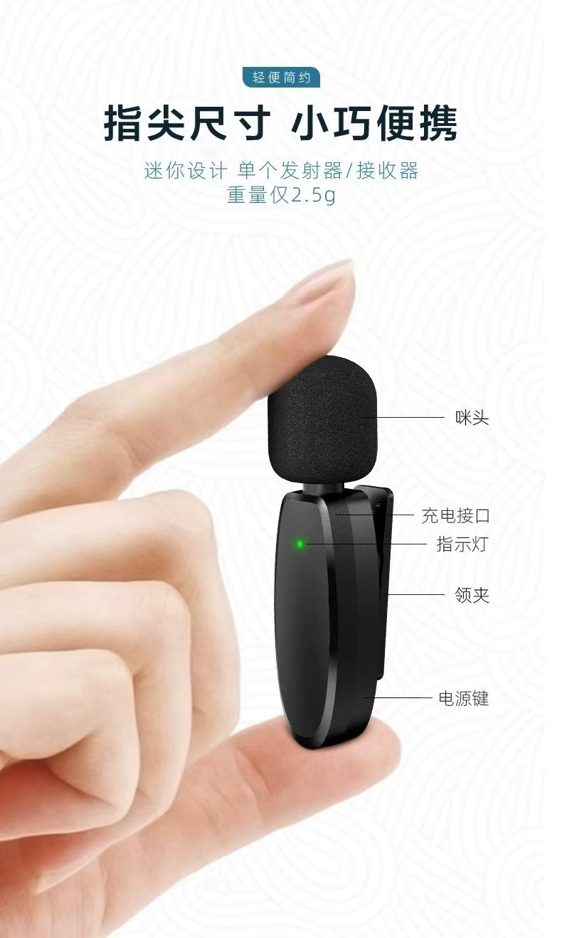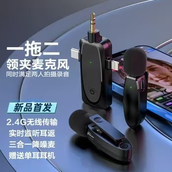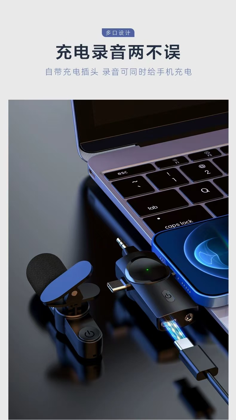 국경 간 무선 칼라 클립 마이크 라이브 비디오 지능형 소음 감소 녹음 완벽한 호환 3 대 1 충전 칼라 클립