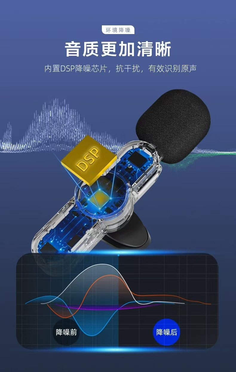 국경 간 무선 칼라 클립 마이크 라이브 비디오 지능형 소음 감소 녹음 완벽한 호환 3 대 1 충전 칼라 클립스토어 가기