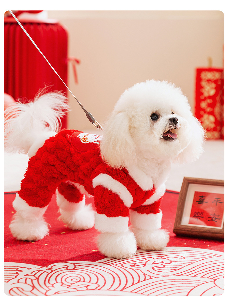 가을과 겨울 개 축제 새해 개 거북이 벨벳 새해 네 다리 벨벳 고양이 따뜻한 겨울 애완 동물 옷