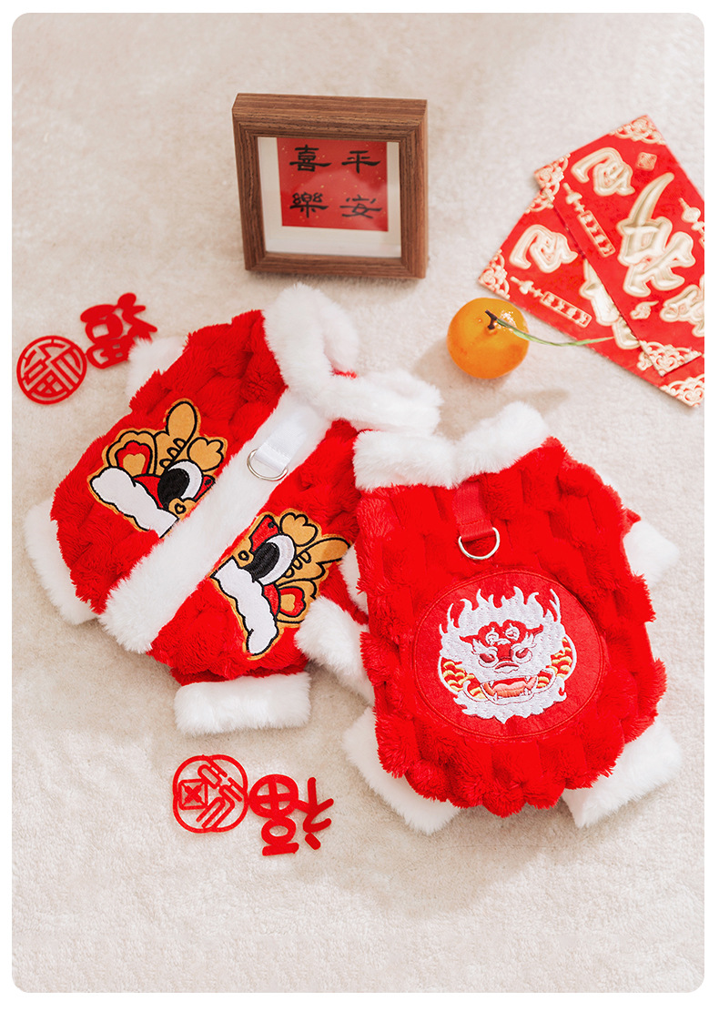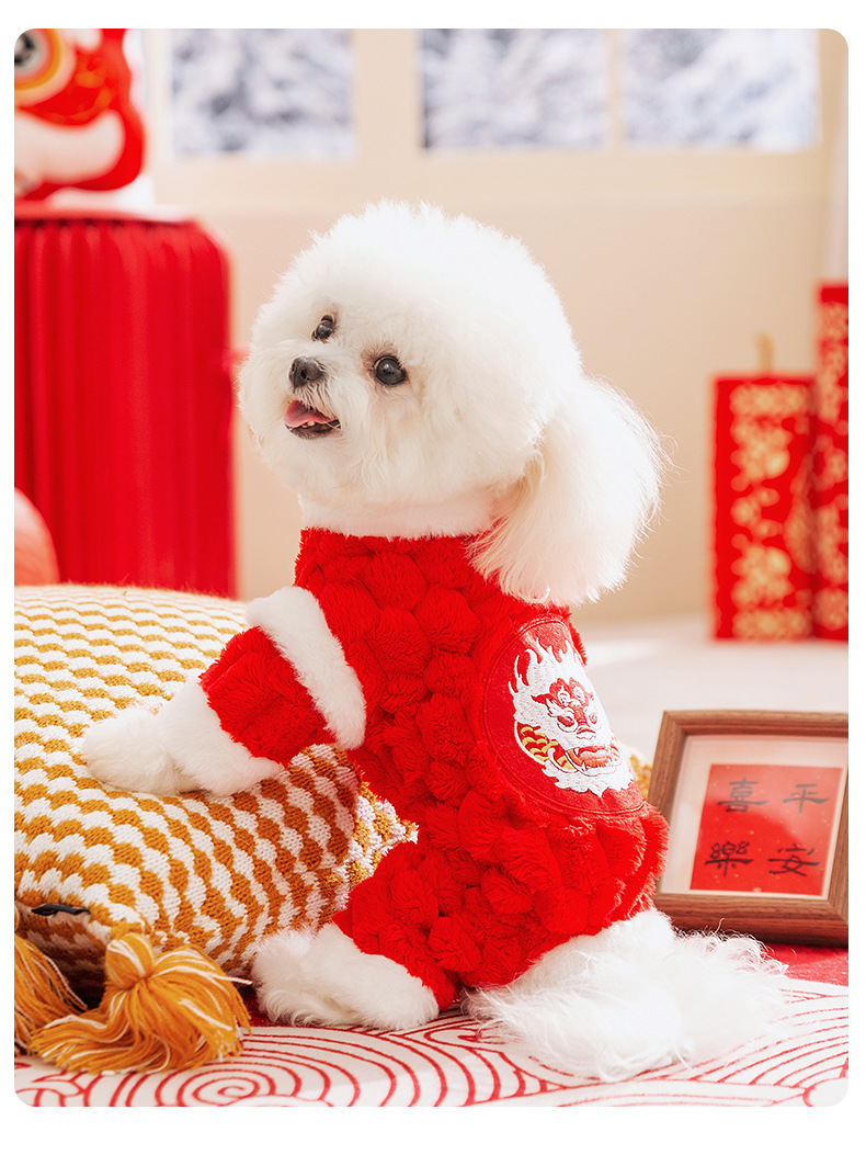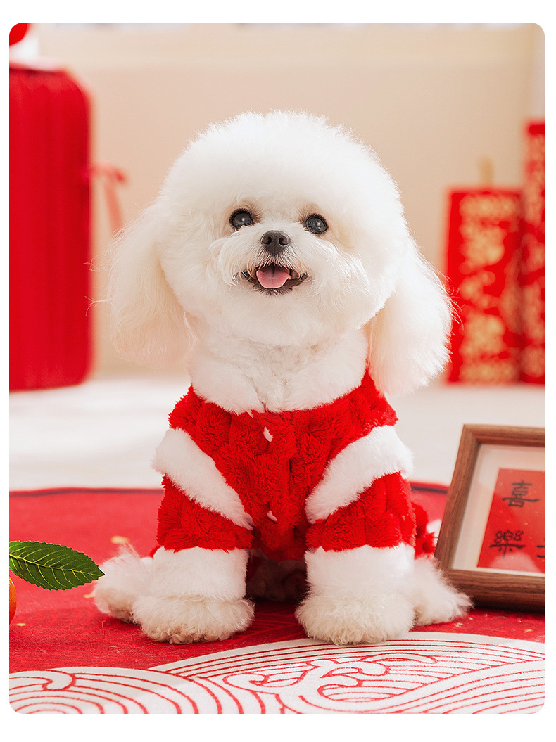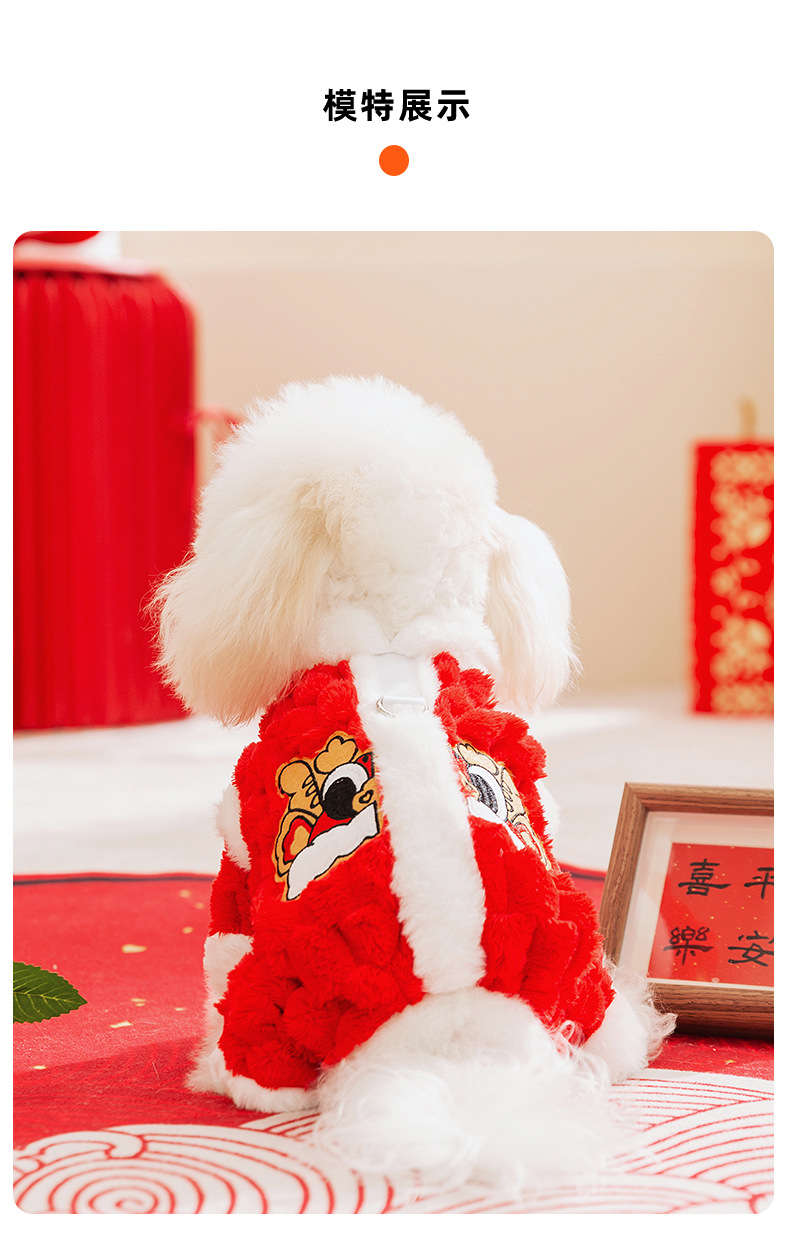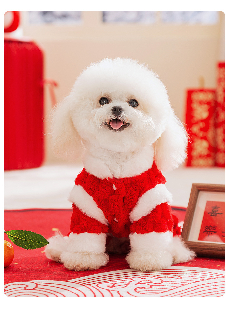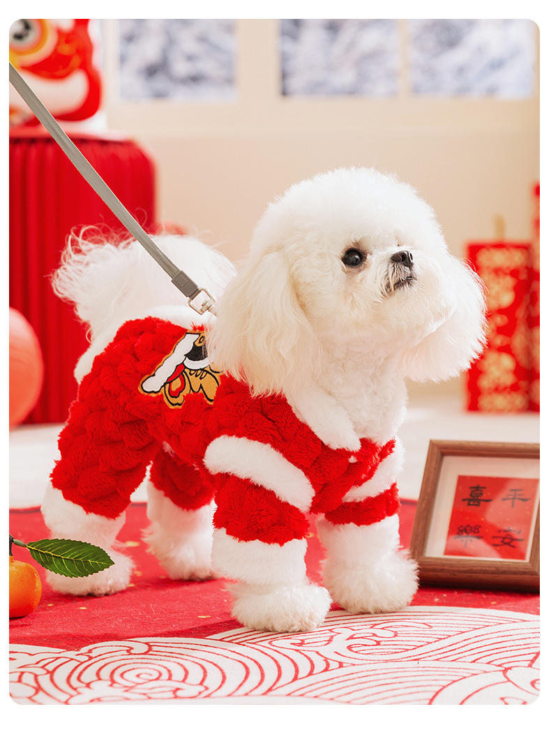 가을과 겨울 개 축제 새해 개 거북이 벨벳 새해 네 다리 벨벳 고양이 따뜻한 겨울 애완 동물 옷스토어 가기