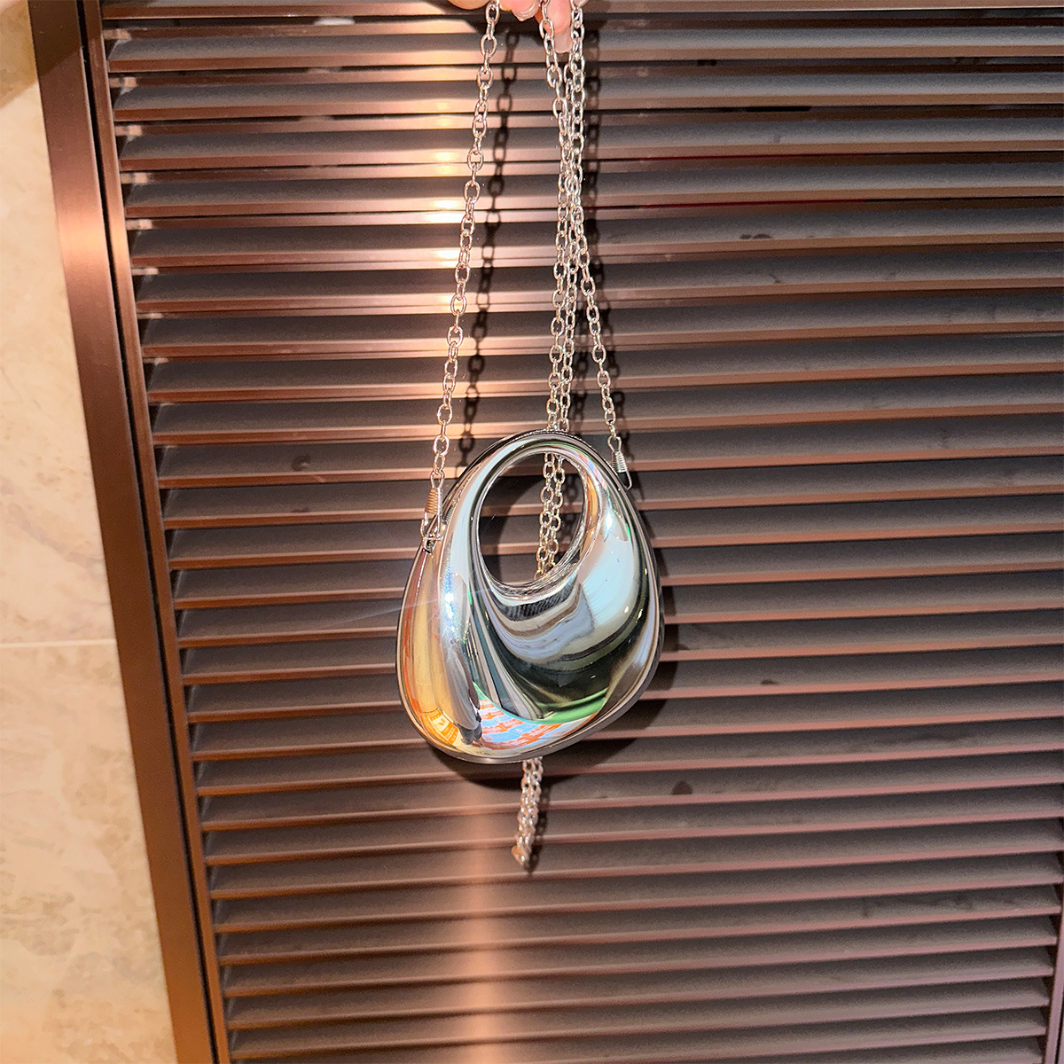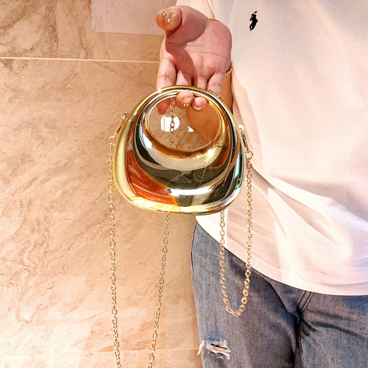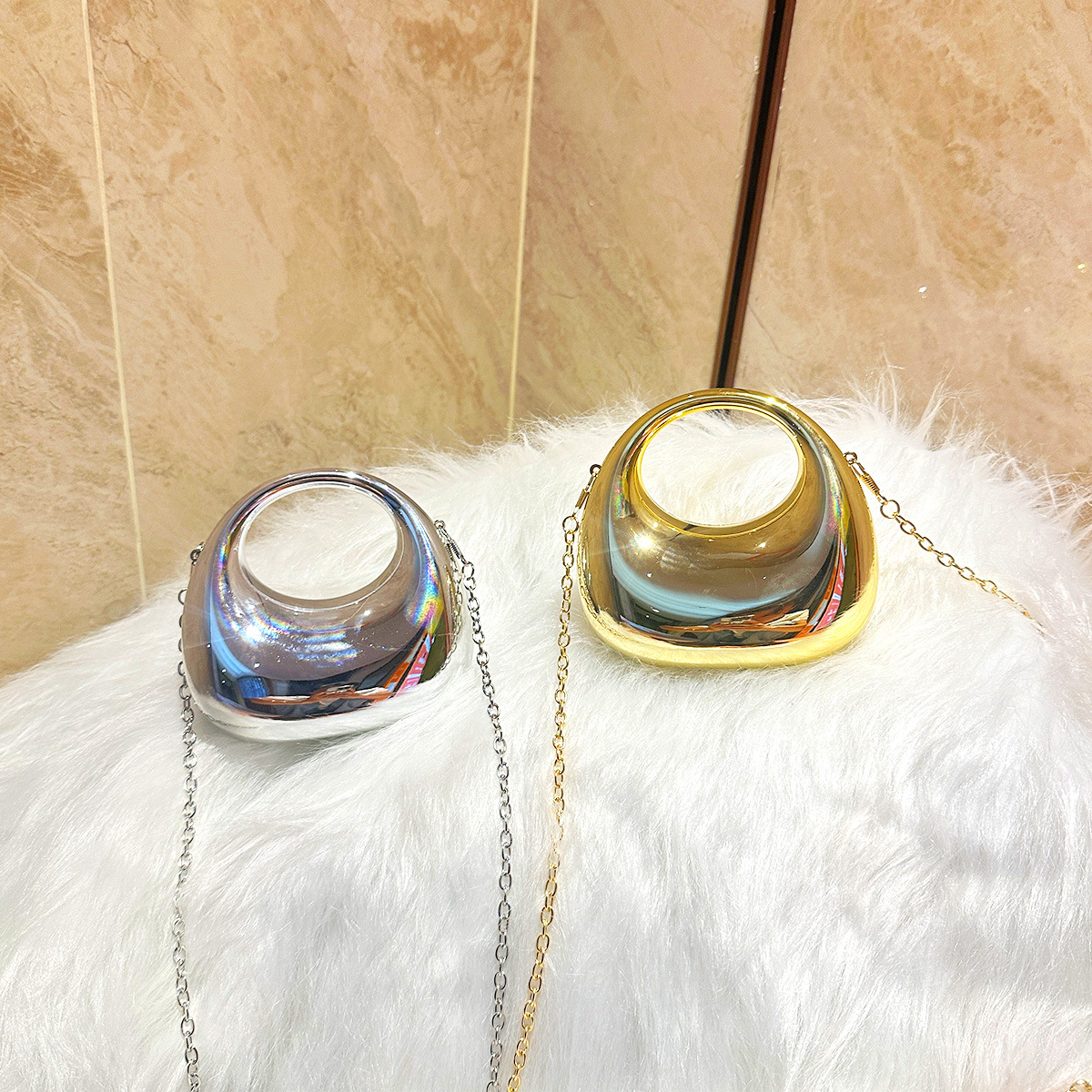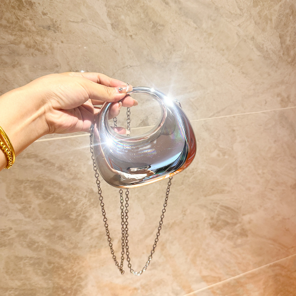 국경 간 유럽과 미국의 패션 아크릴 클러치 백 여성의 2024 새로운 독특한 광택 세련된 금속 어깨 크로스 바디 백