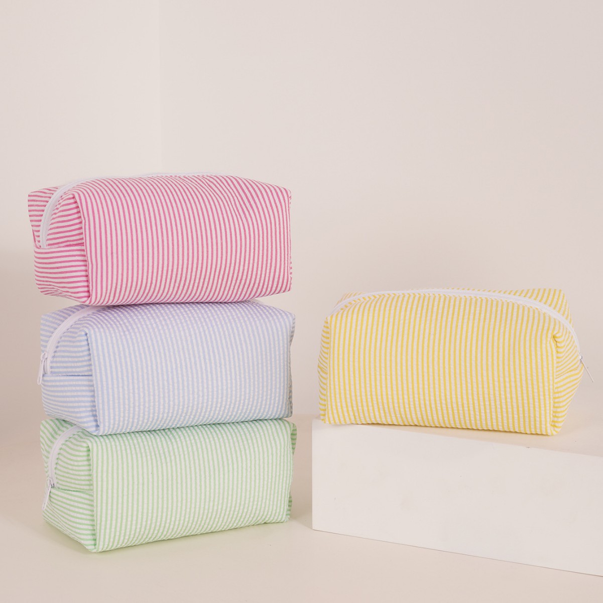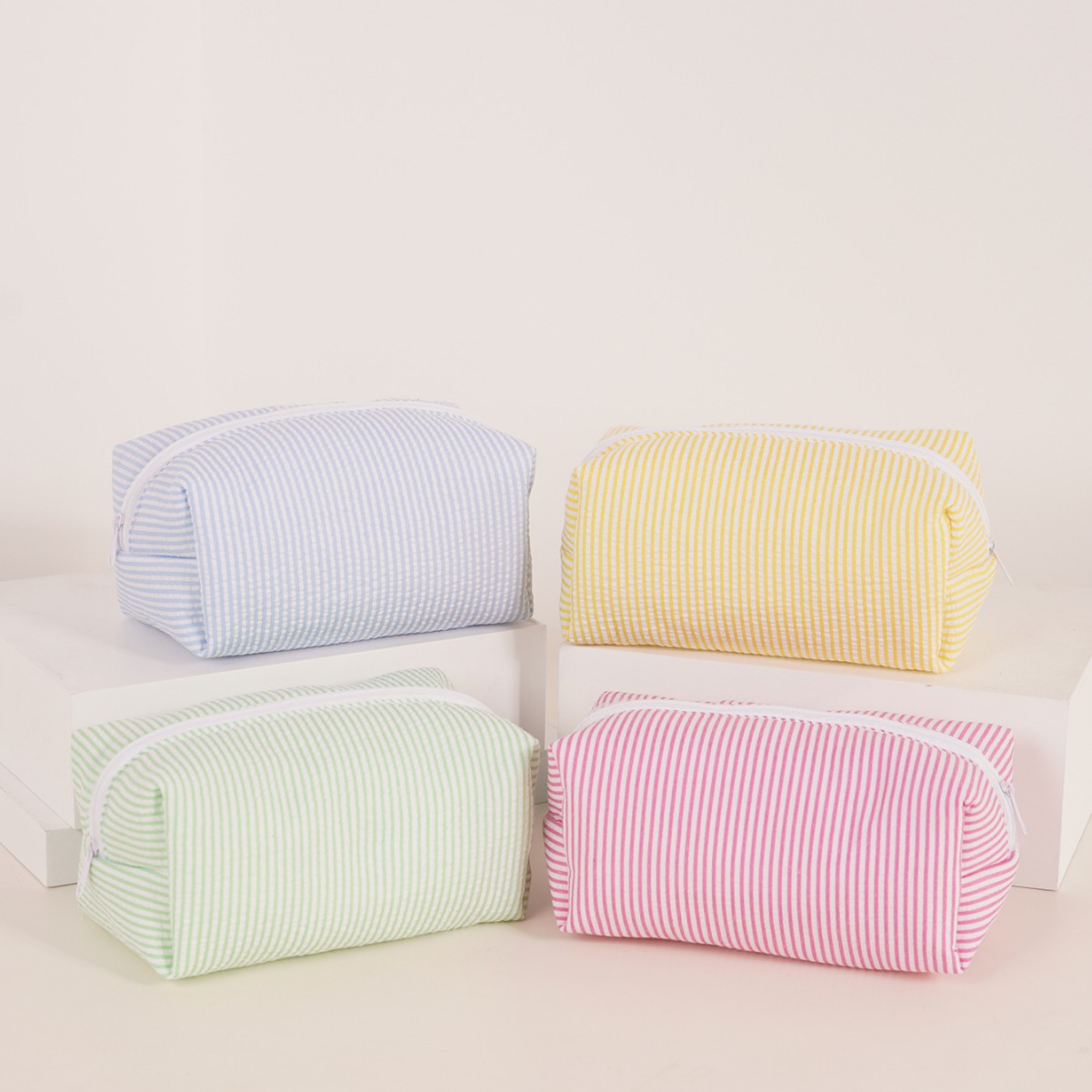 줄무늬 화장품 가방 면화 패딩 간단한 귀여운 소녀의 여행 워시 백 휴대용 휴대용 보관 가방 국경스토어 가기