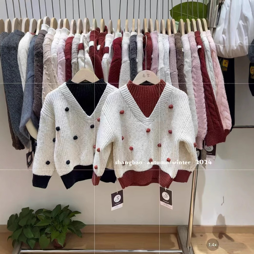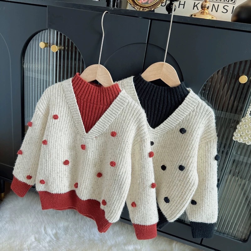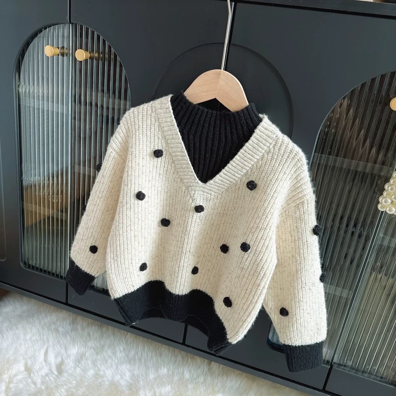 소녀들의 가을과 겨울 2024 새로운 어린이 겨울 색상 매칭 니트 셔츠 세련된 어린 소녀의 겨울 풀오버 탑스토어 가기