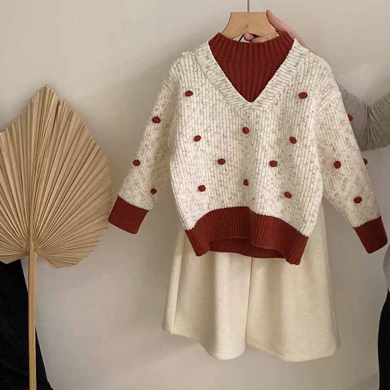 소녀들의 가을과 겨울 2024 새로운 어린이 겨울 색상 매칭 니트 셔츠 세련된 어린 소녀의 겨울 풀오버 탑