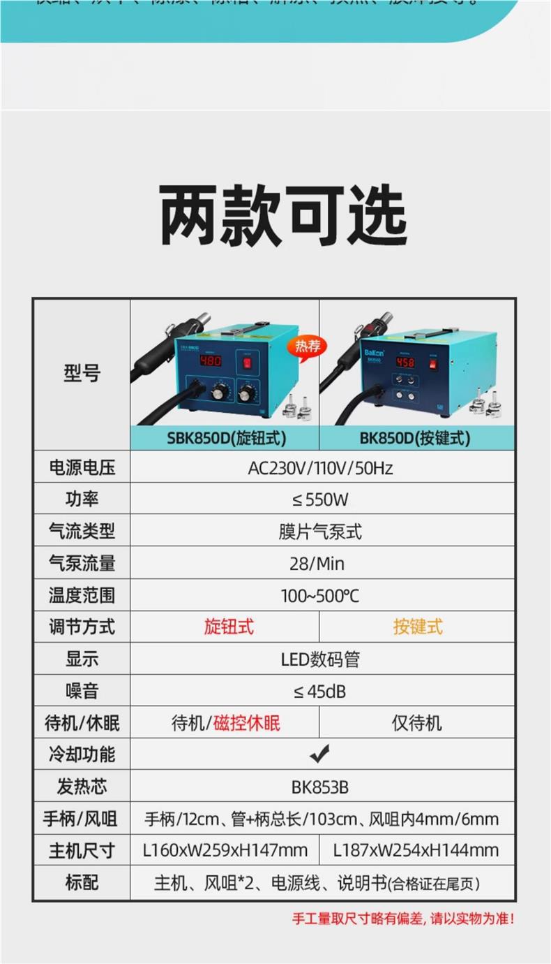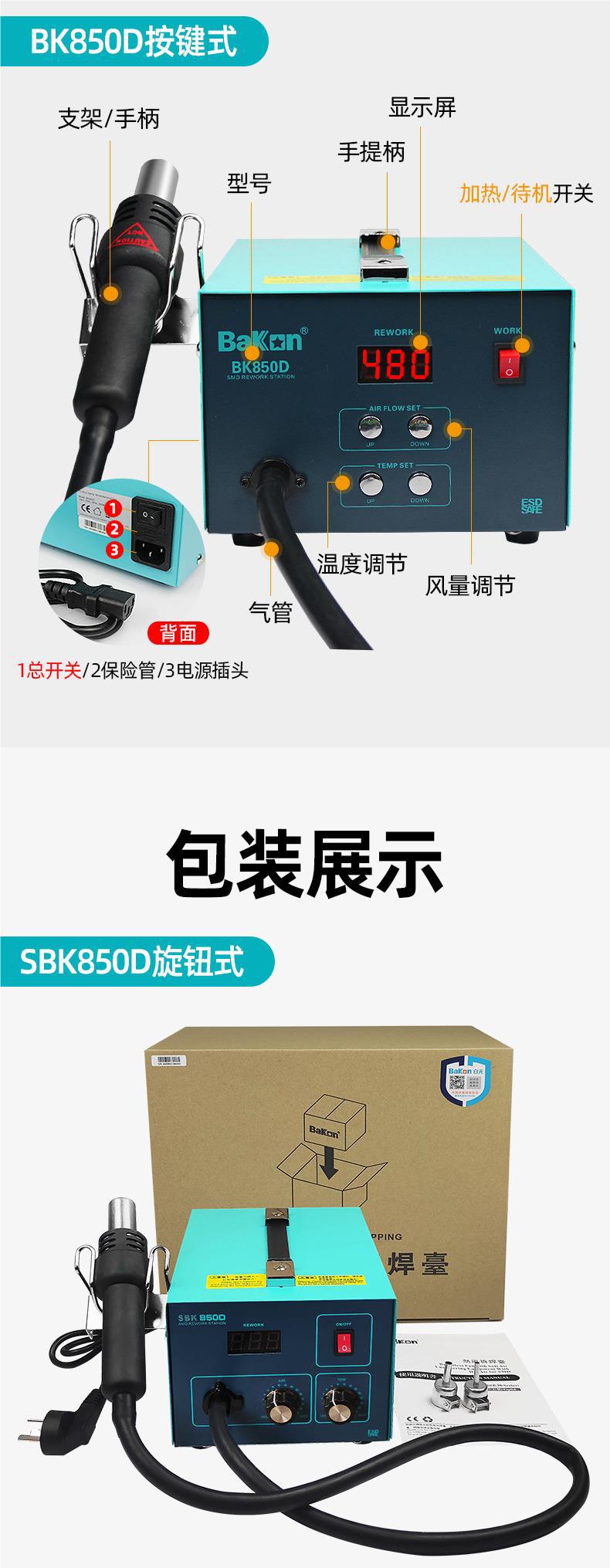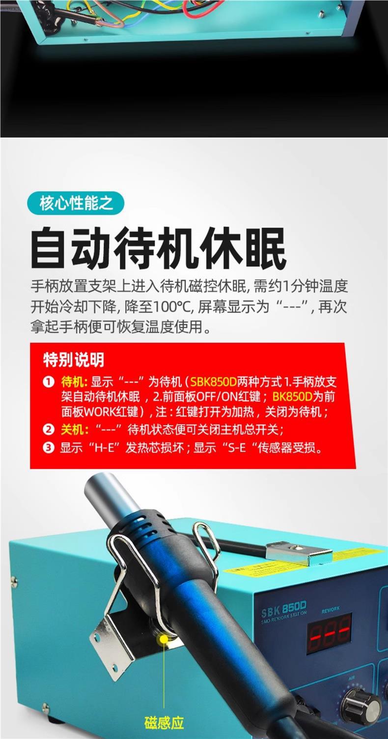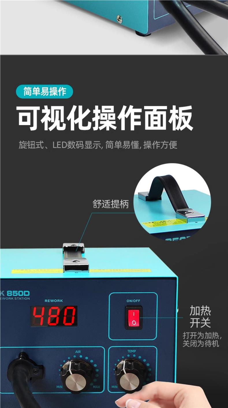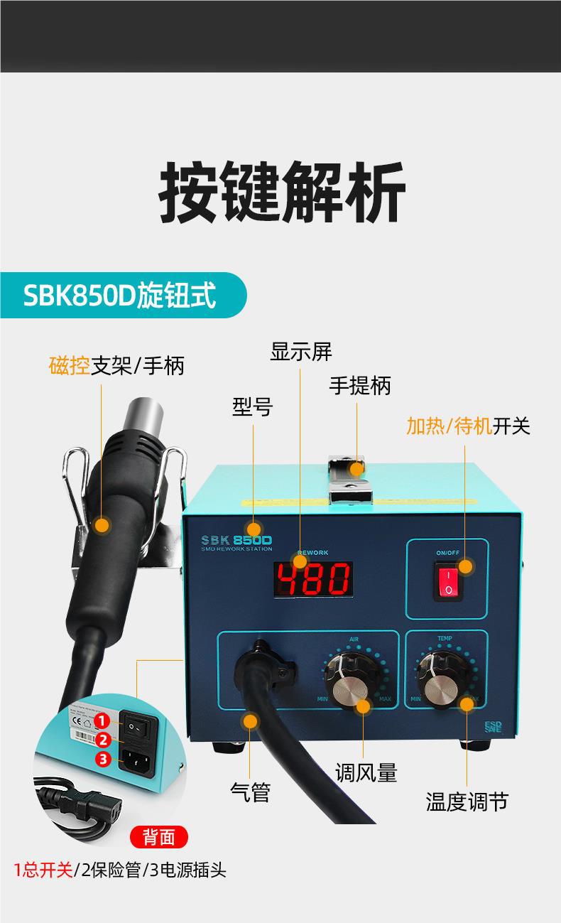 흰색 빛 뜨거운 공기 총 용접 스테이션 SBK850 디지털 디스플레이 일정한 온도 조절 산업용 휴대 전화 수리 뜨거운 공기 잡아 용접 스테이션
