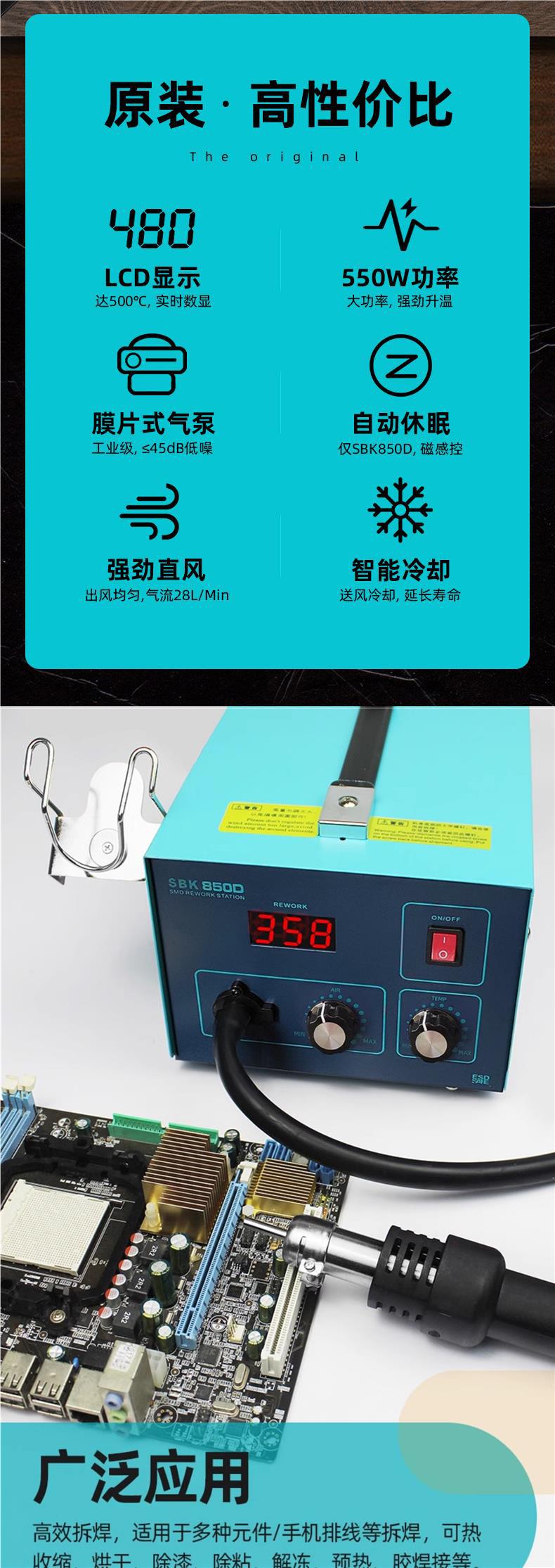 흰색 빛 뜨거운 공기 총 용접 스테이션 SBK850 디지털 디스플레이 일정한 온도 조절 산업용 휴대 전화 수리 뜨거운 공기 잡아 용접 스테이션스토어 가기