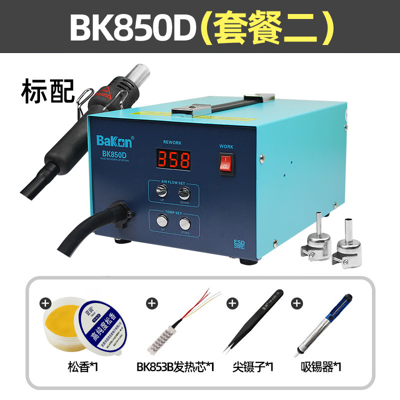 • BK850D 버튼 세트 2 (표준 구성 + 로진 + 가열 코어 + 뾰족한 핀셋 + 납땜 흡수 장치)