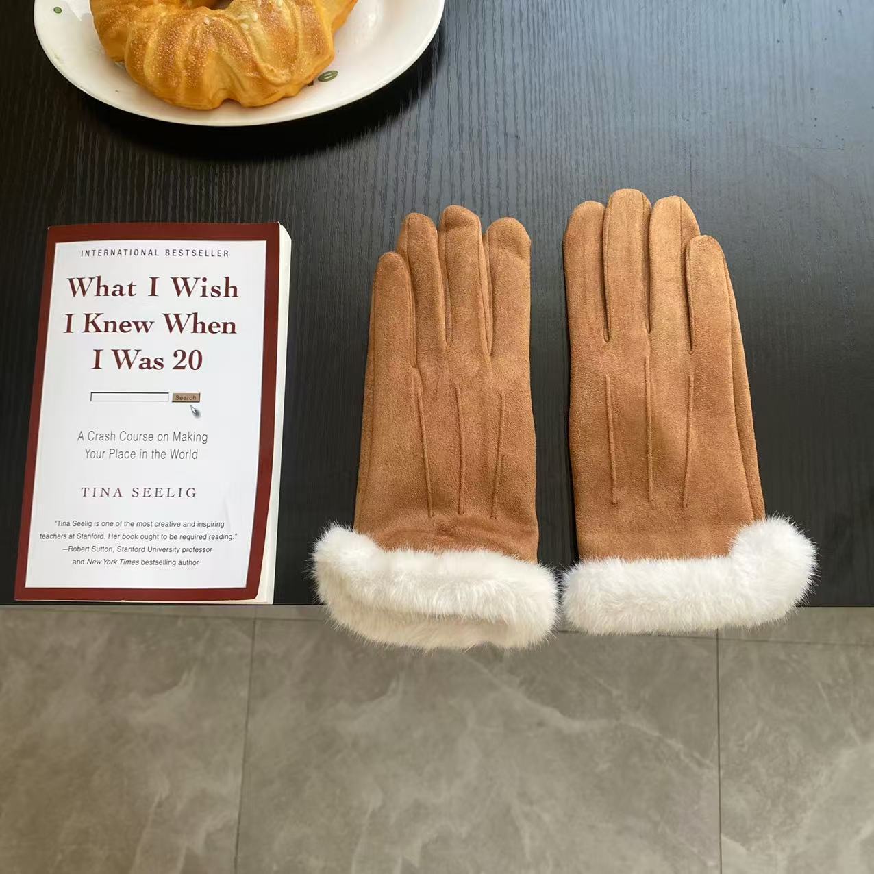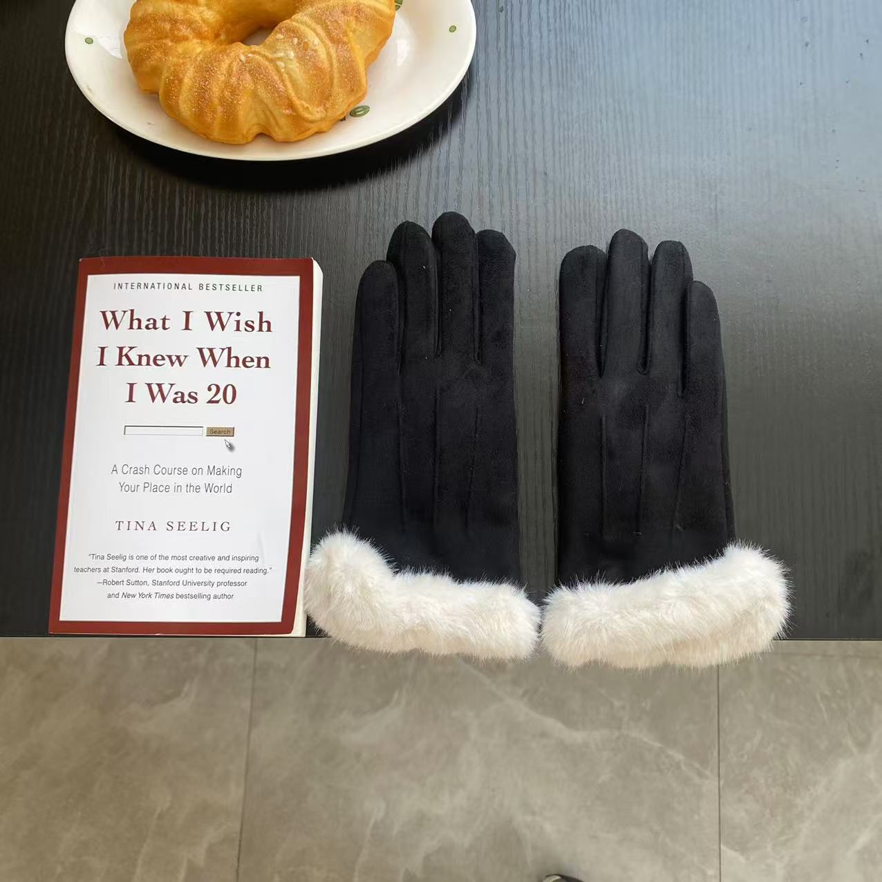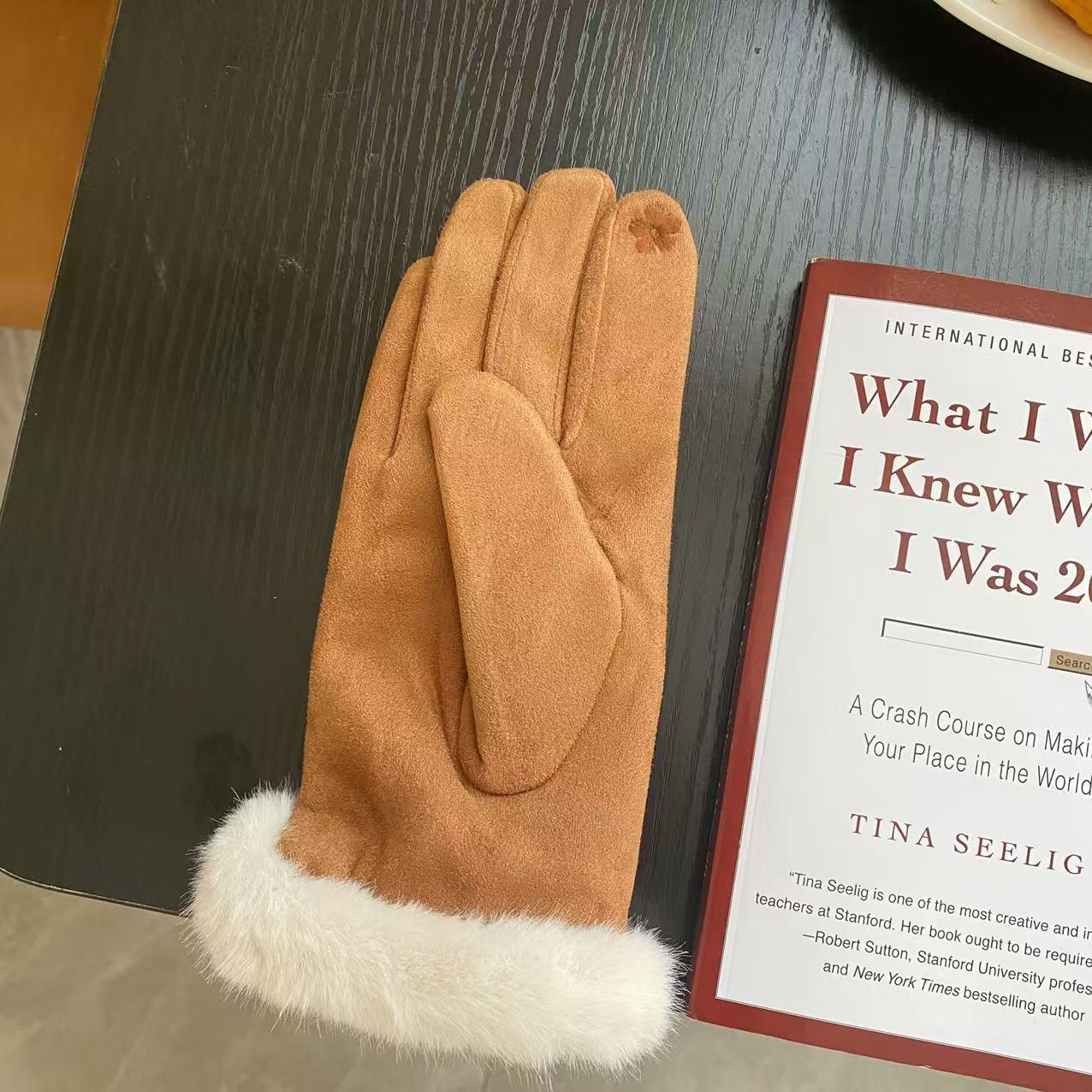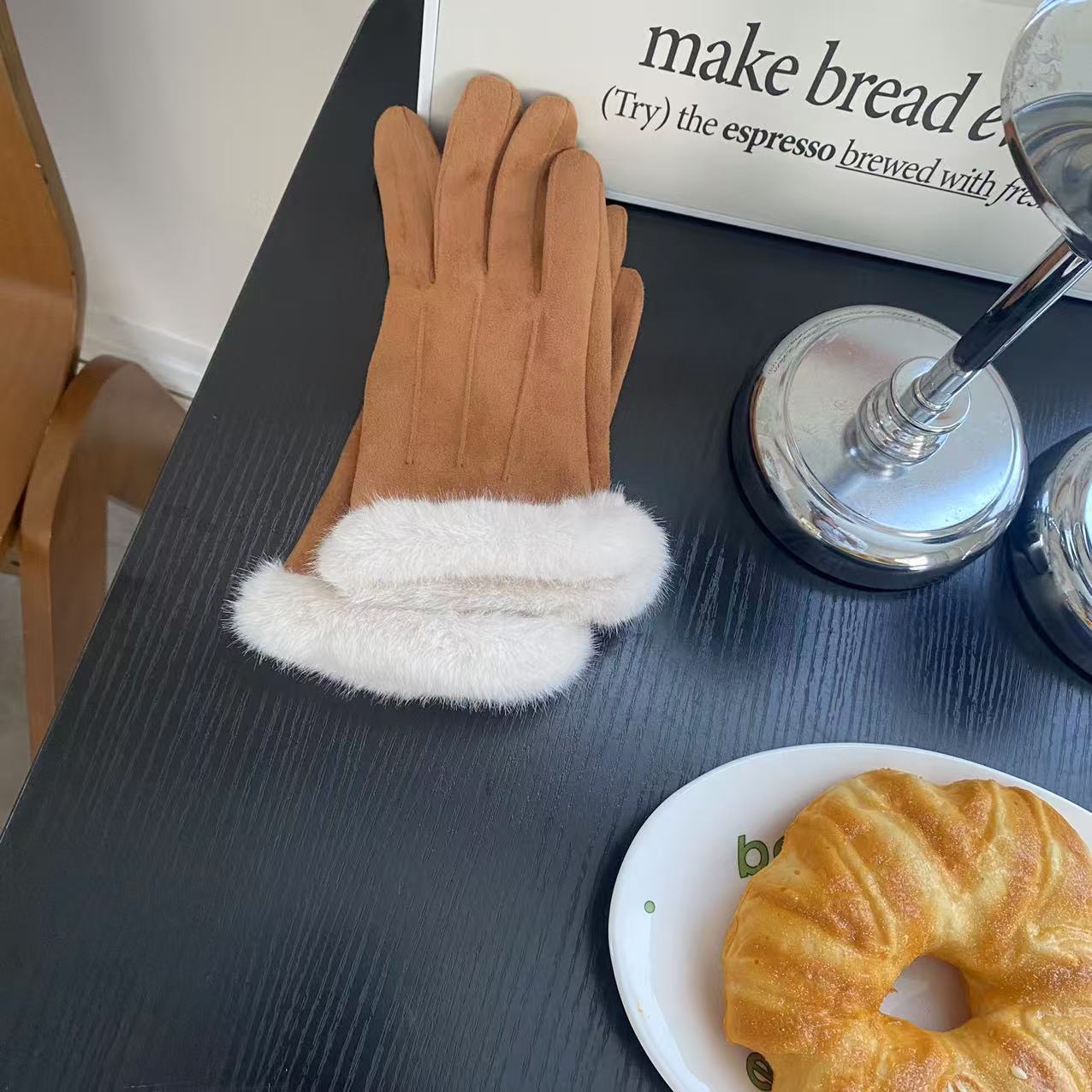 2024 빈티지 겨울 따뜻한 장갑 여성용 스웨이드 봉제 야외 두꺼운 스키 방풍 냉동 다섯 손가락 세트