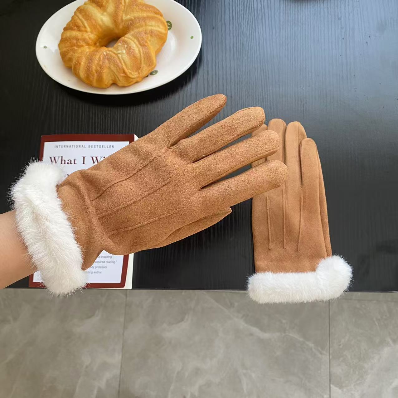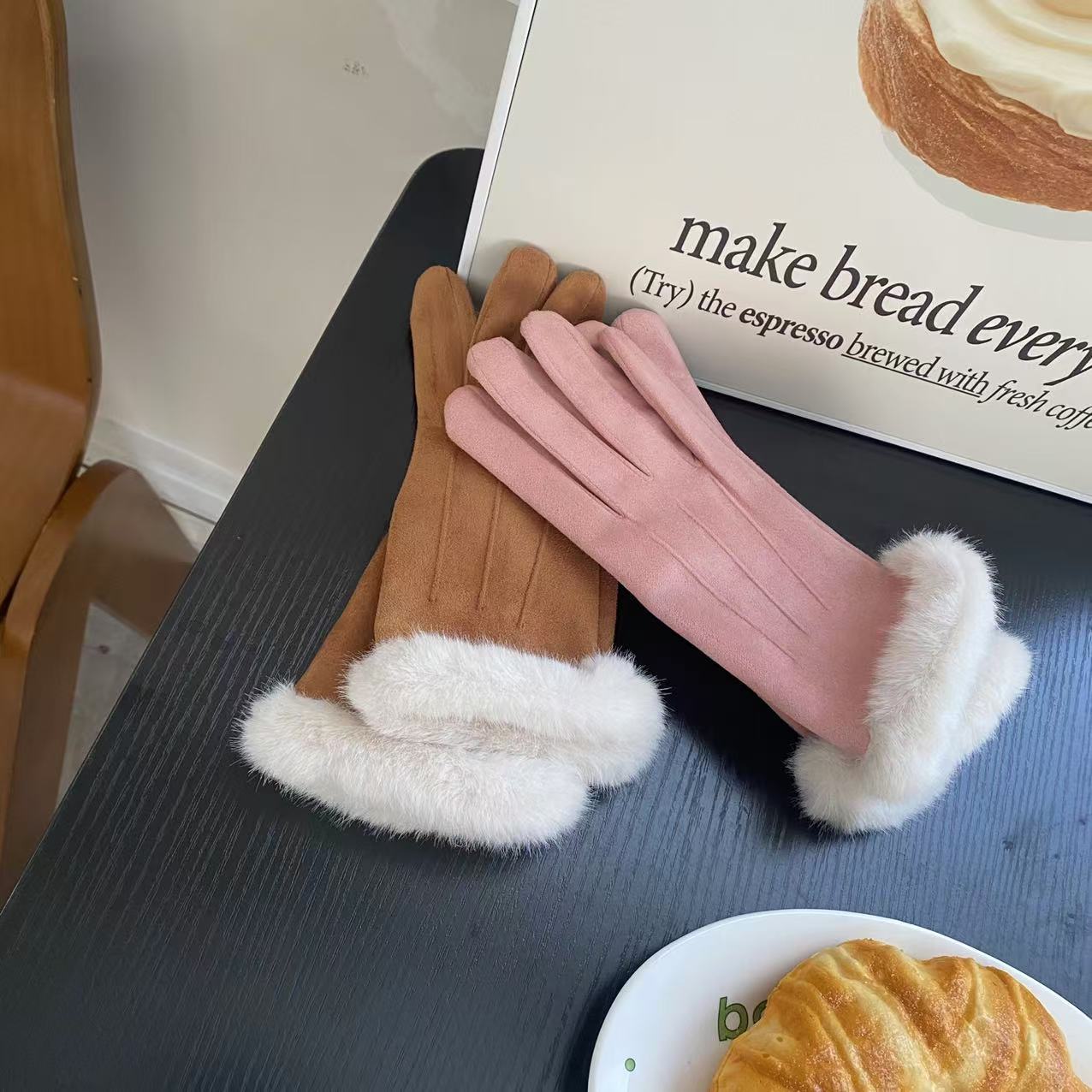 2024 빈티지 겨울 따뜻한 장갑 여성용 스웨이드 봉제 야외 두꺼운 스키 방풍 냉동 다섯 손가락 세트스토어 가기