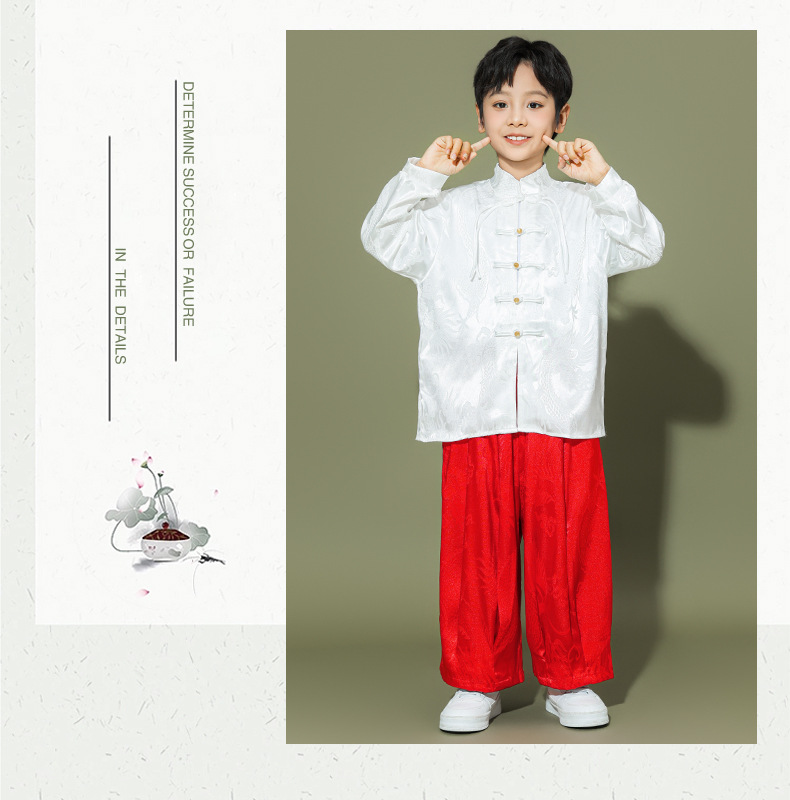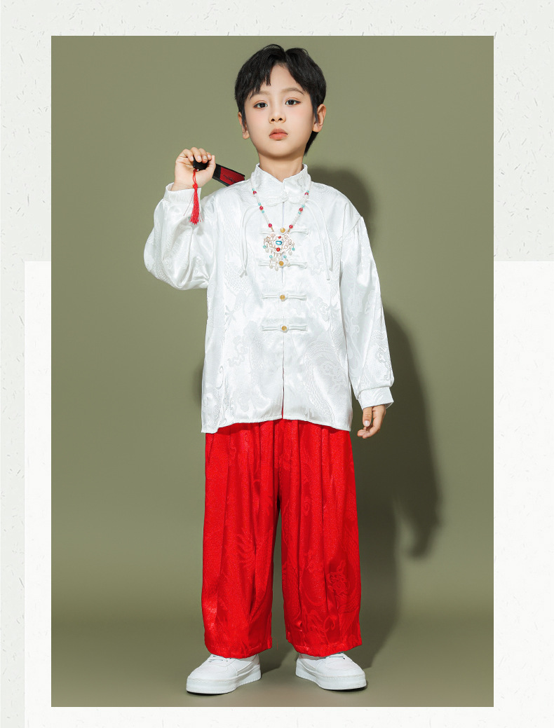 • 긴 소매: A416 흰색 중국 스타일 탑 + B262 빨간색 바지