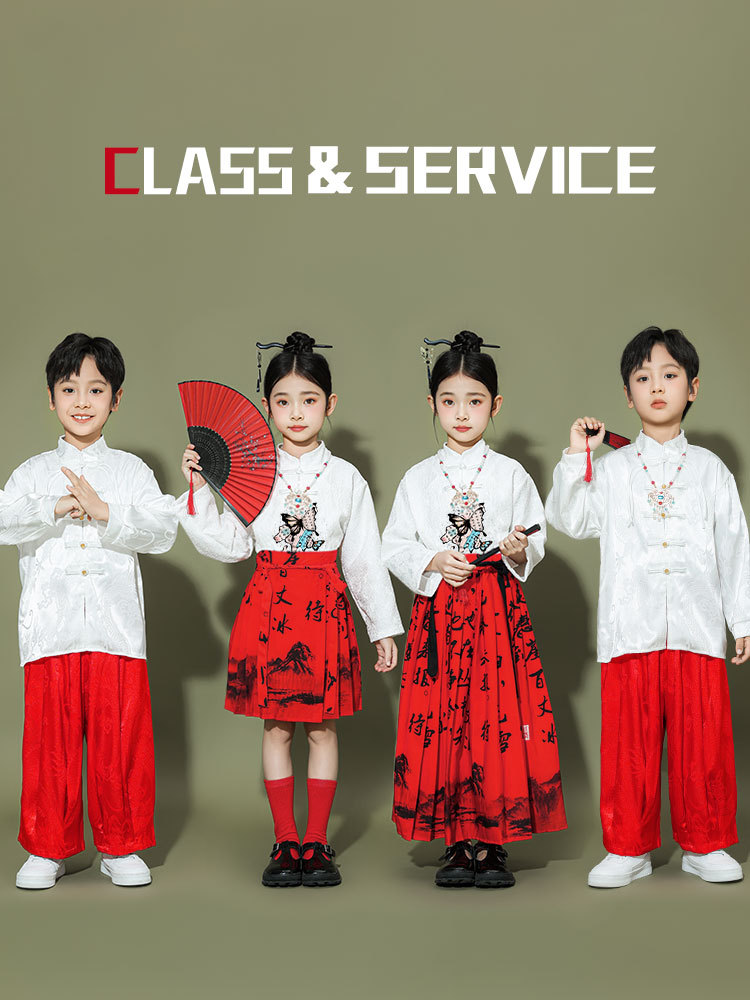 설날 어린이 의상 골동품 말 얼굴 치마 의상 초등학교 학생 게임 중국 스타일 클래스 의상 국가 조수 암송 의상