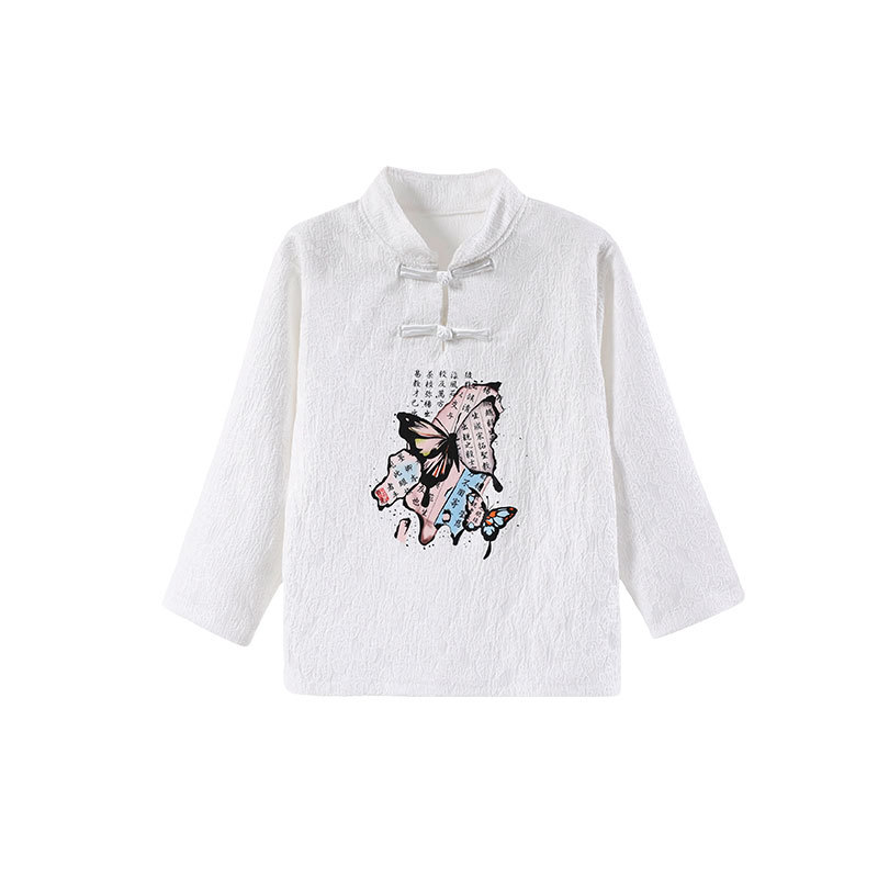 • 긴 소매: 단일 조각 A601 흰색 중국 스타일 나비 탑