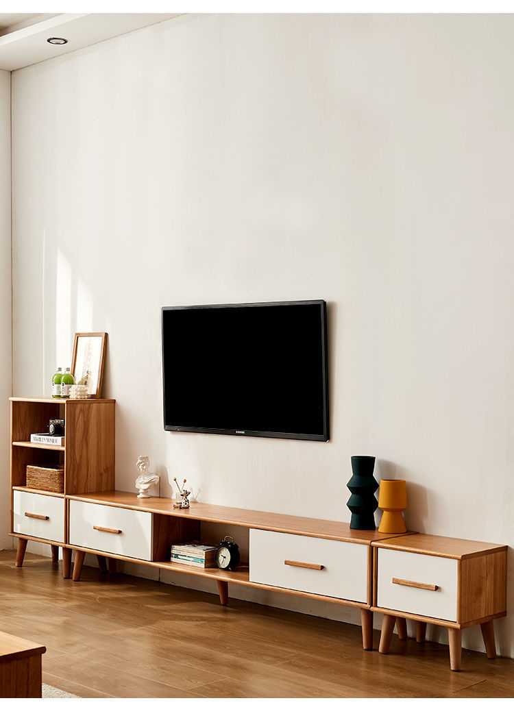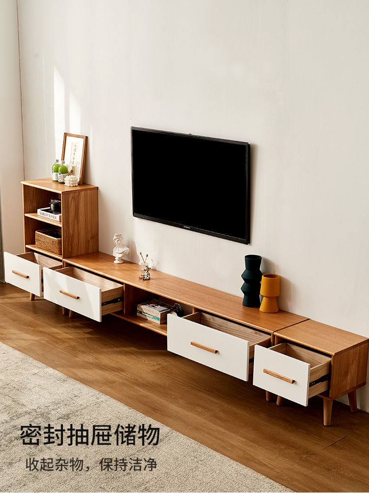 단단한 나무 TV 내각 커피 테이블 조합 간단한 현대 거실 좁은 작은 아파트 TV 내각 저장 내각 통합