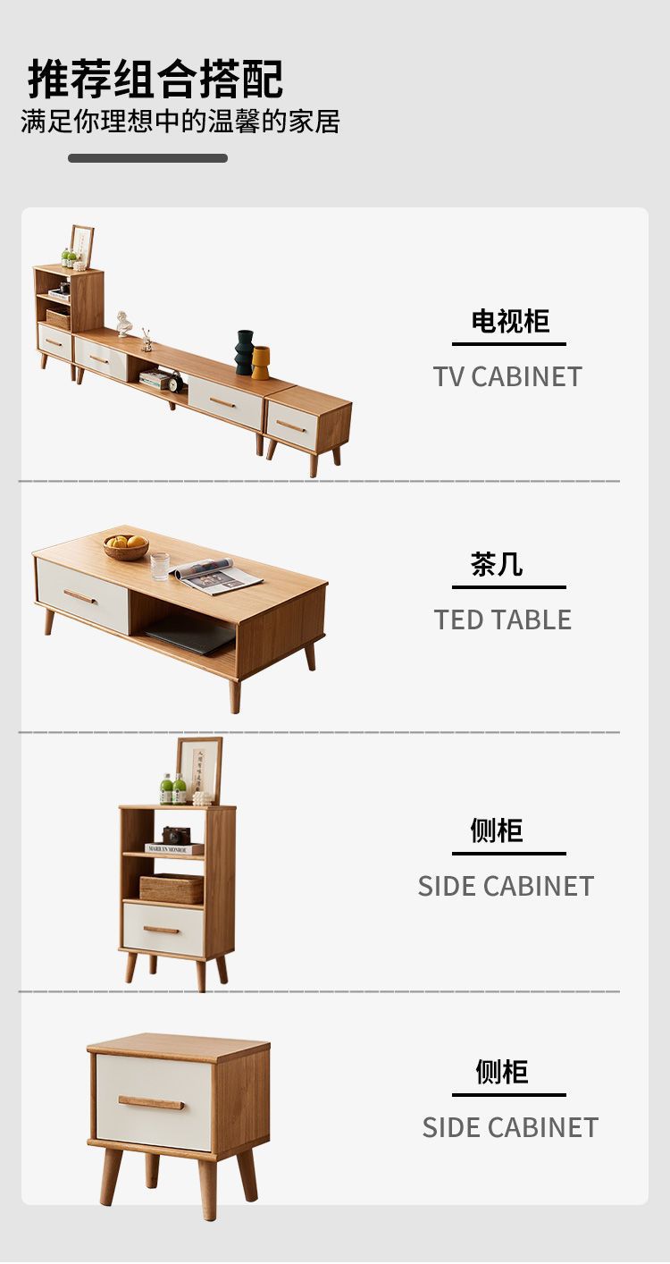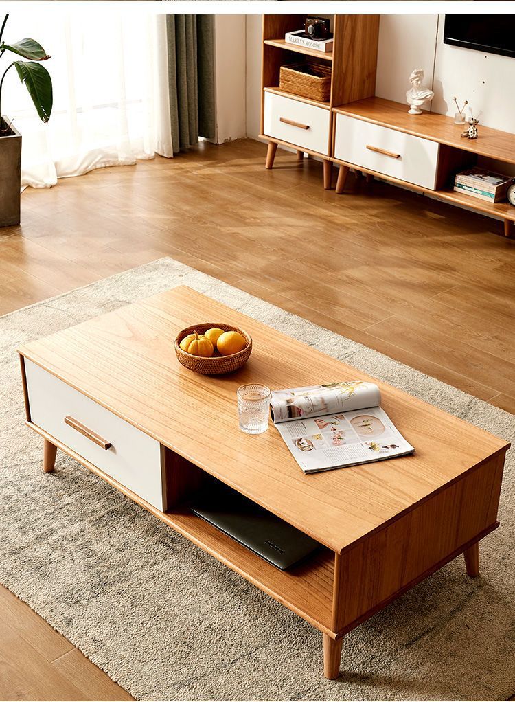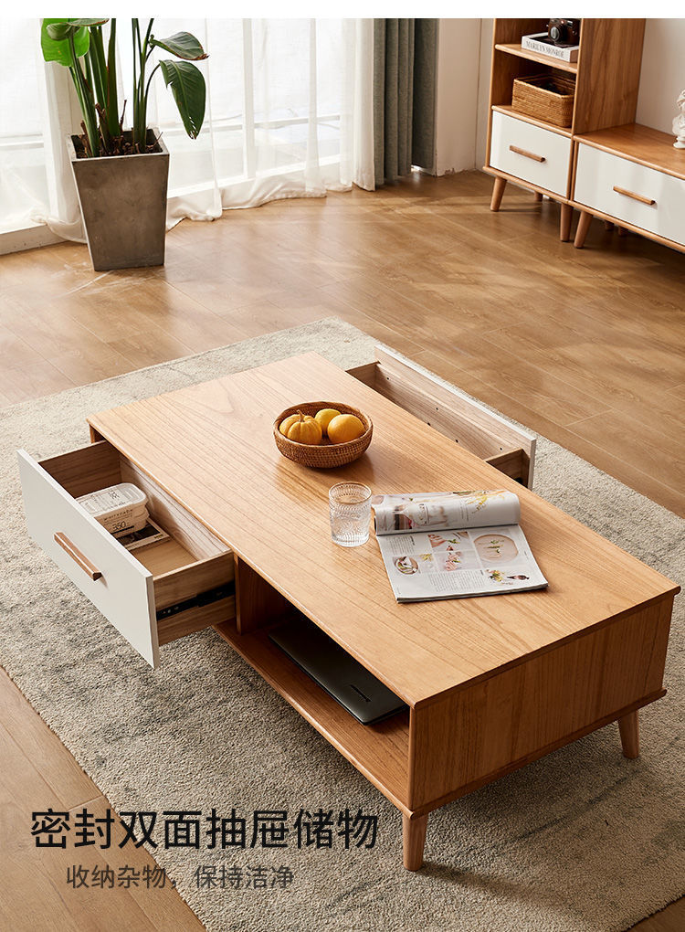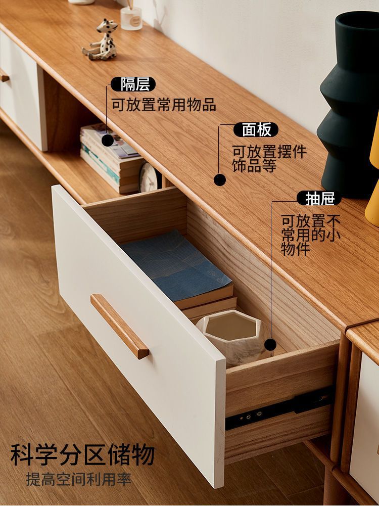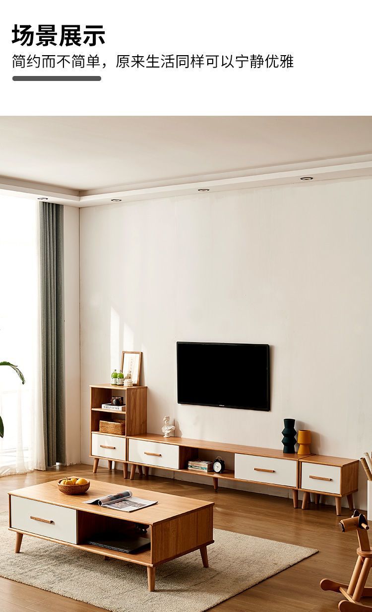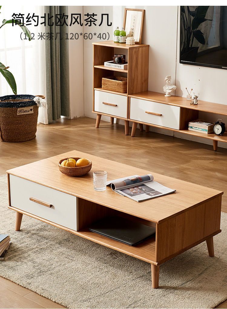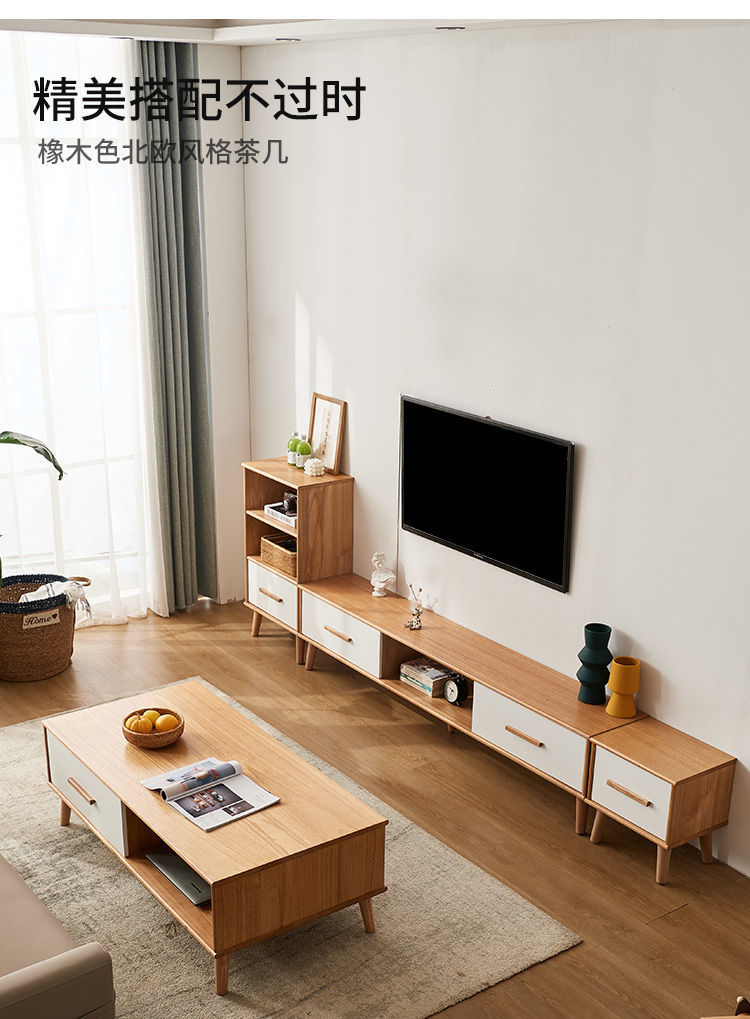단단한 나무 TV 내각 커피 테이블 조합 간단한 현대 거실 좁은 작은 아파트 TV 내각 저장 내각 통합스토어 가기