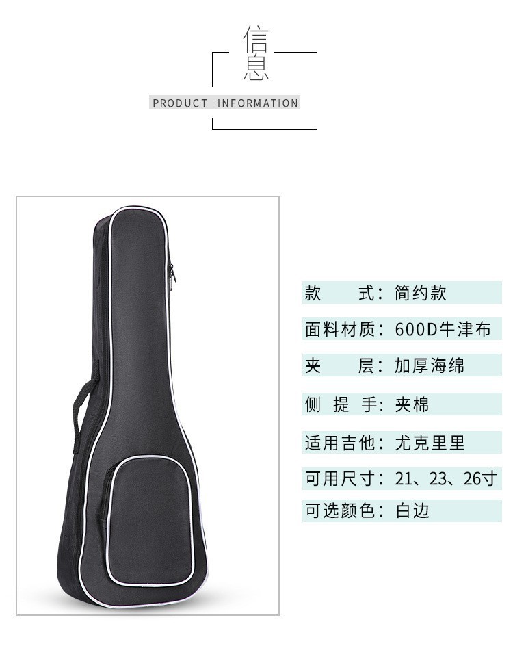 우쿨렐레 가방 방수 및 내구성 화이트 에지 클래식 기타 가방 우쿨렐레 악기 가방