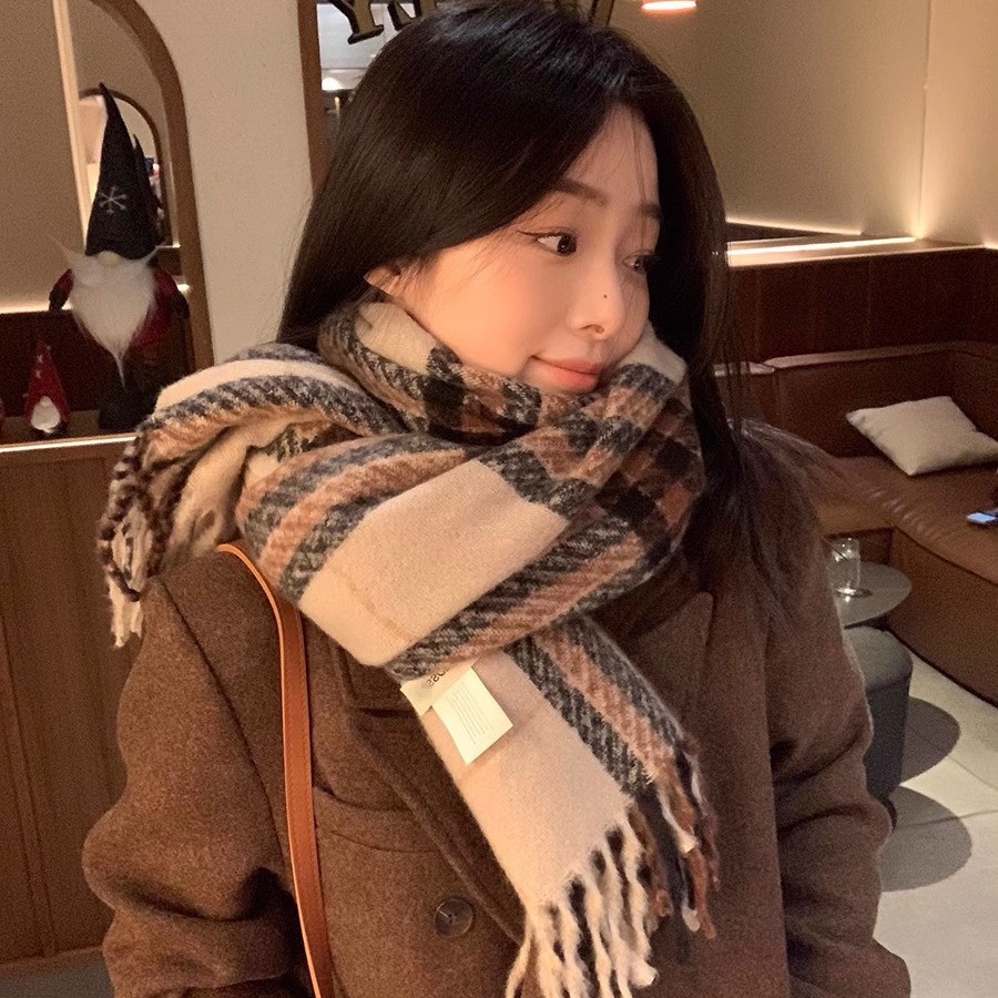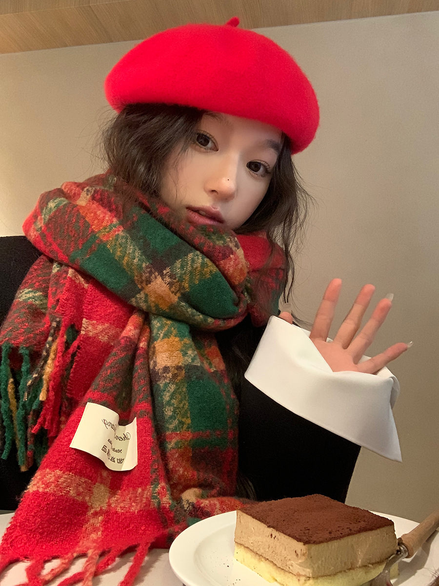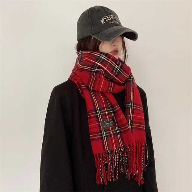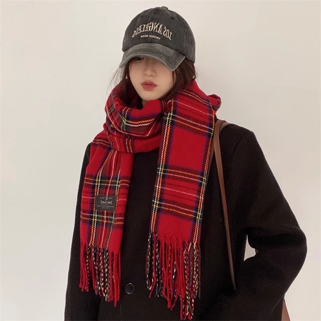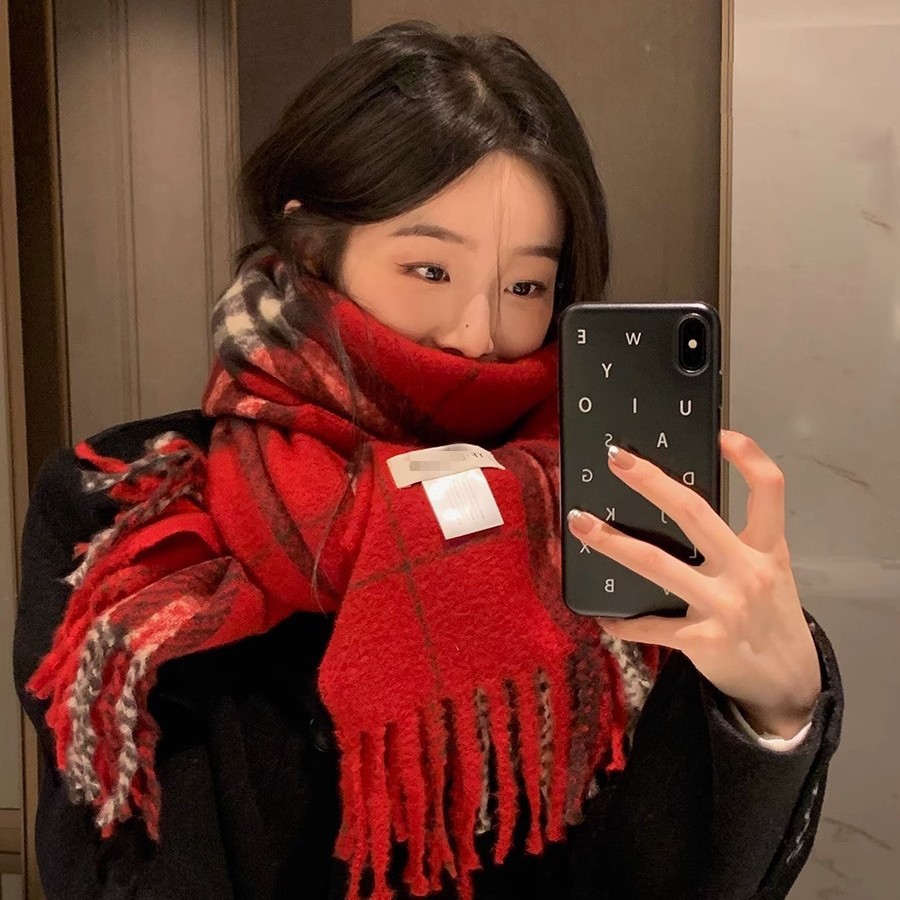 스카프 여자 겨울 새 격자 무늬 크리스마스 붉은 학생 한국식 올매치 따뜻한 두꺼운 스카프 목도리 하이 엔드 센스