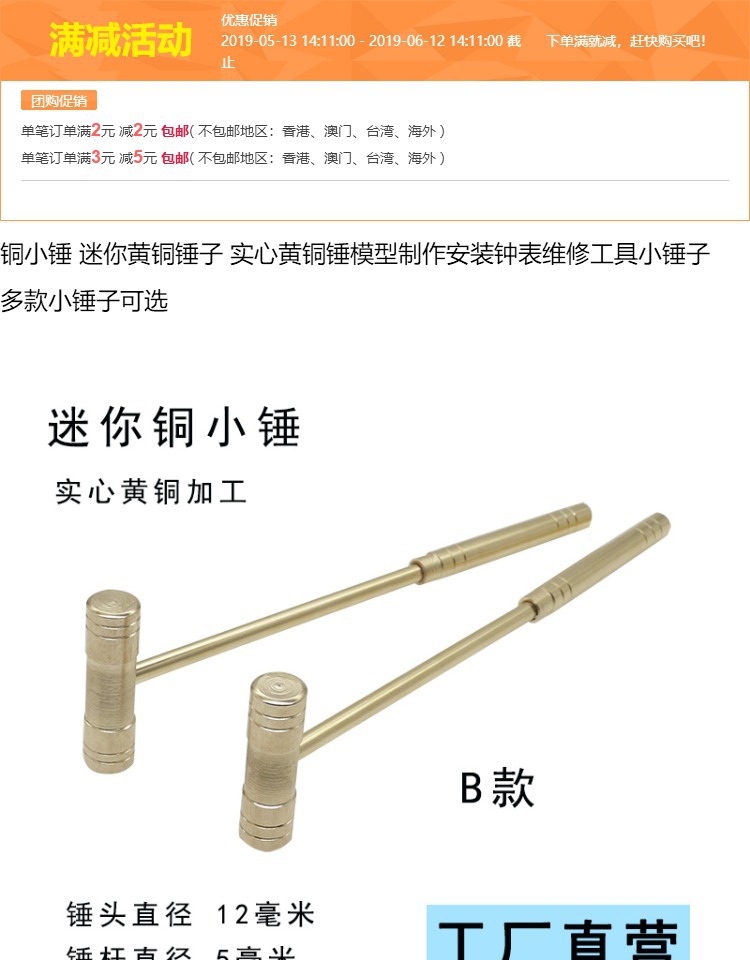 • 황동 소형 해머 B형 1개