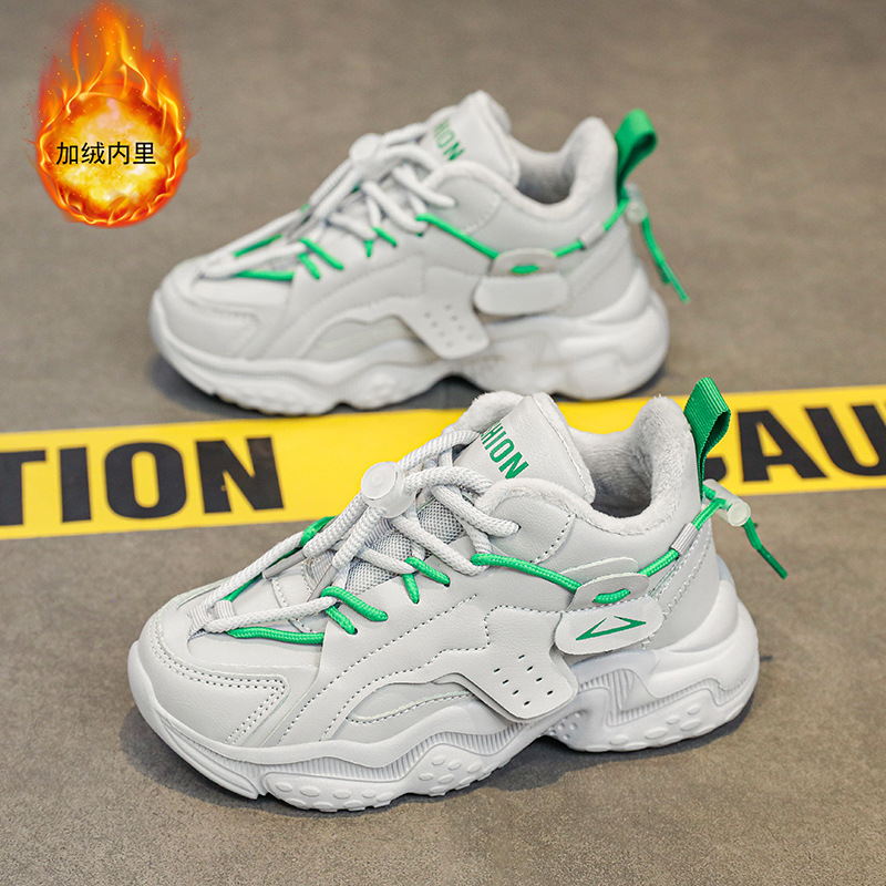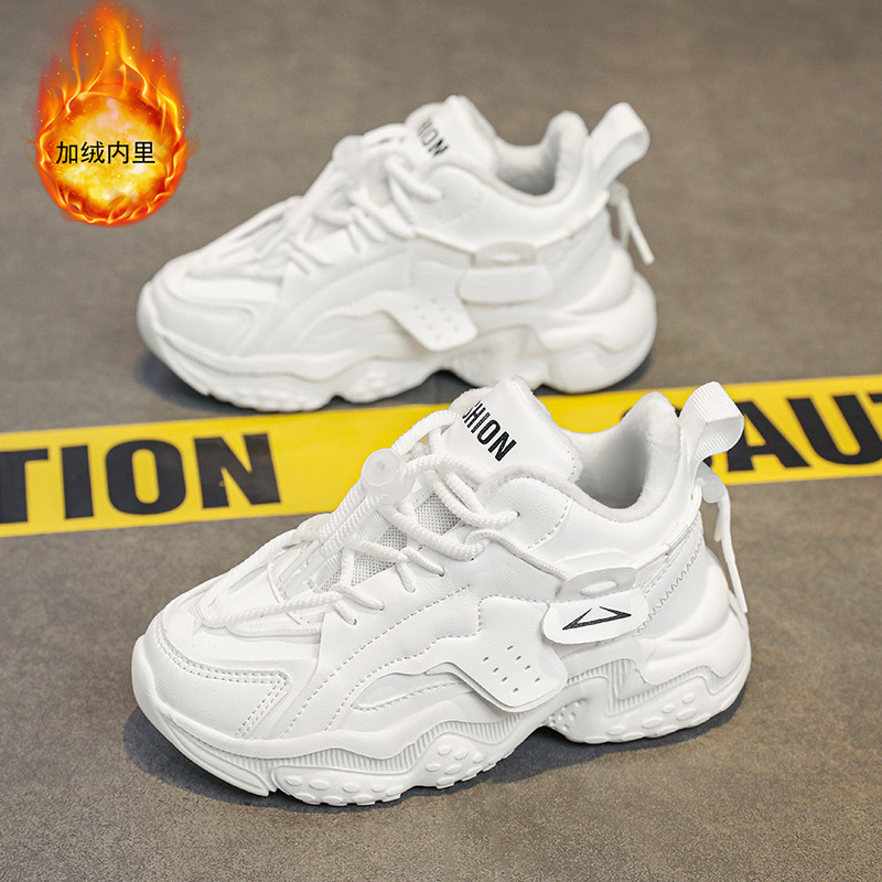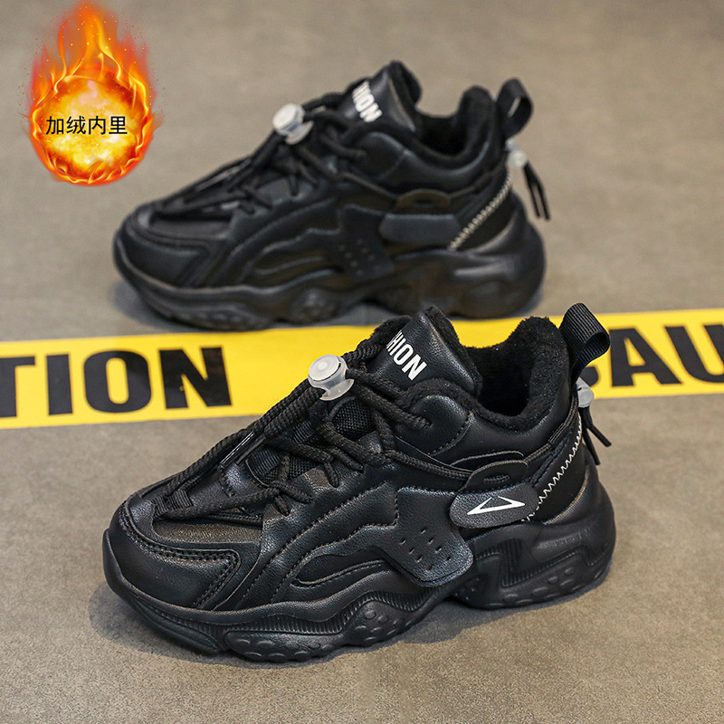 소년 신발 가을/겨울 2024 새로운 가죽 어린이 운동화 중대형 어린이 기모 소프트 단독 소년 토레 신발