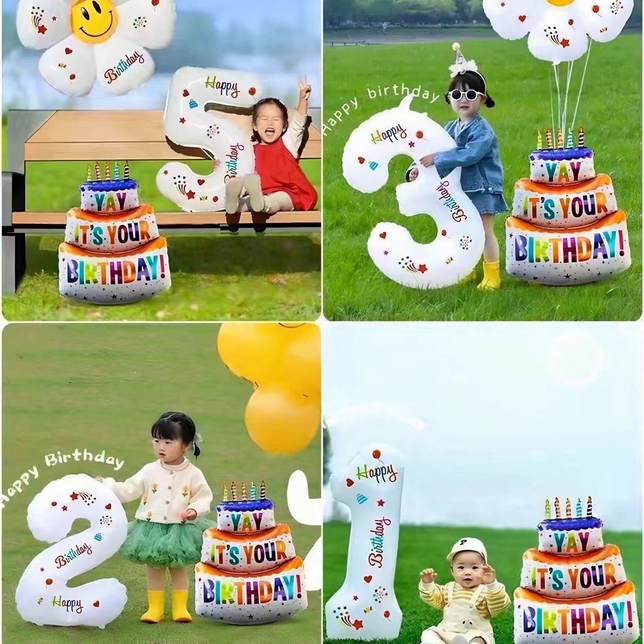 3 층 케이크 디지털 풍선 제로 구매 생일 원피스 원피스 새로운 어린이 생일 파티