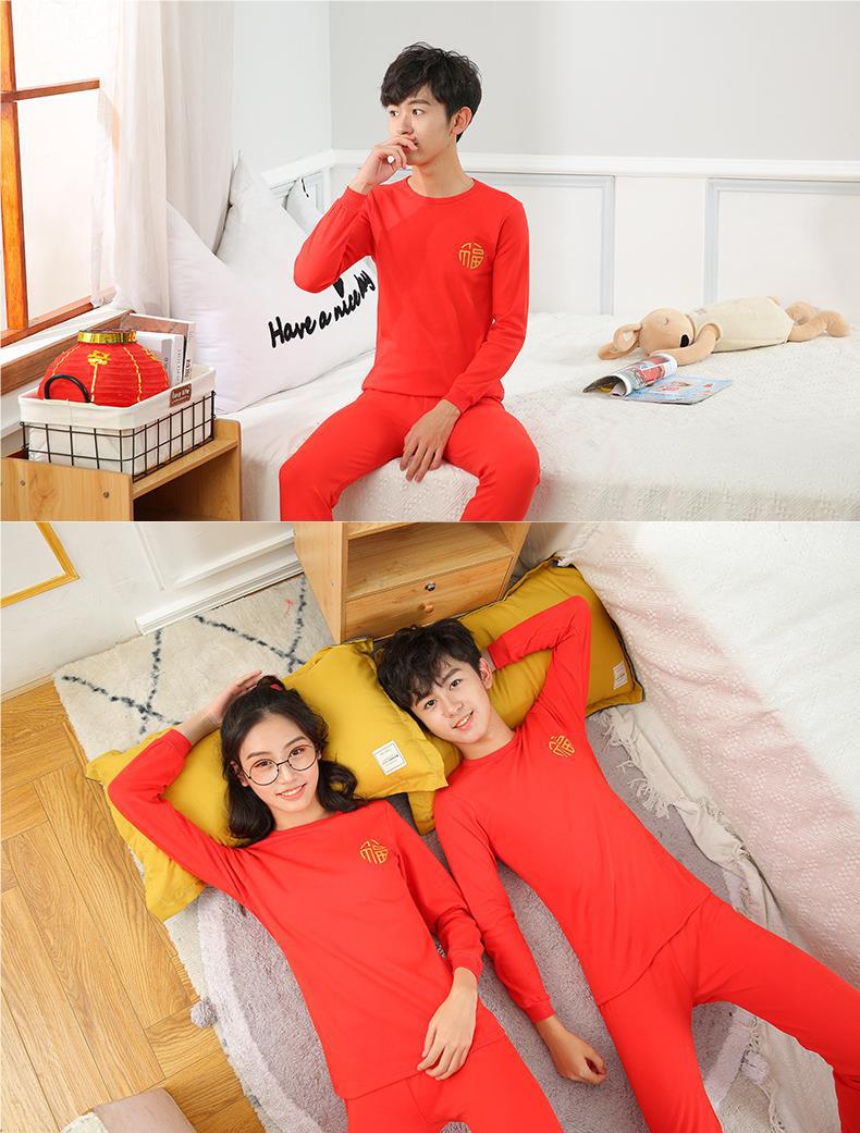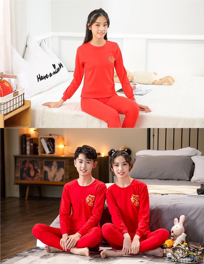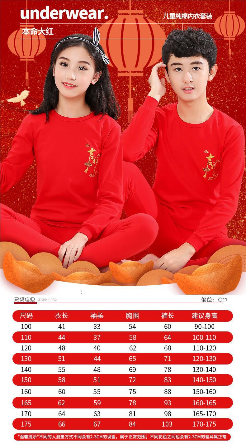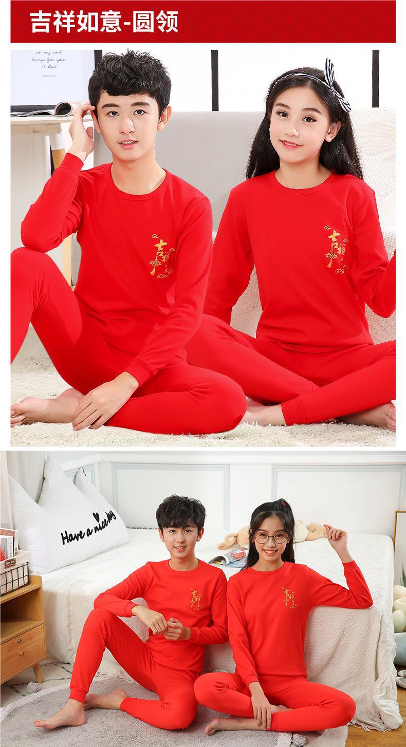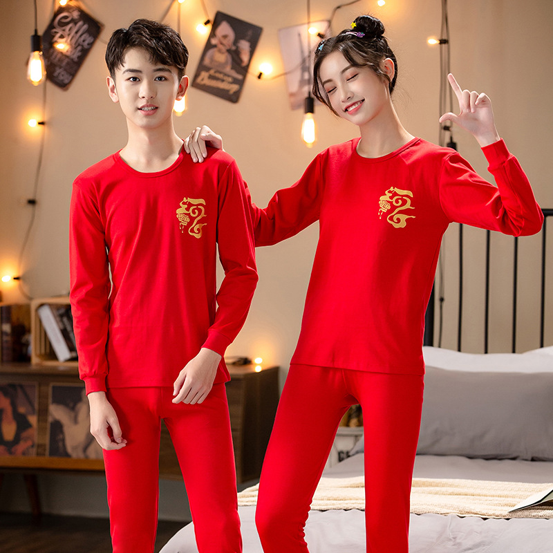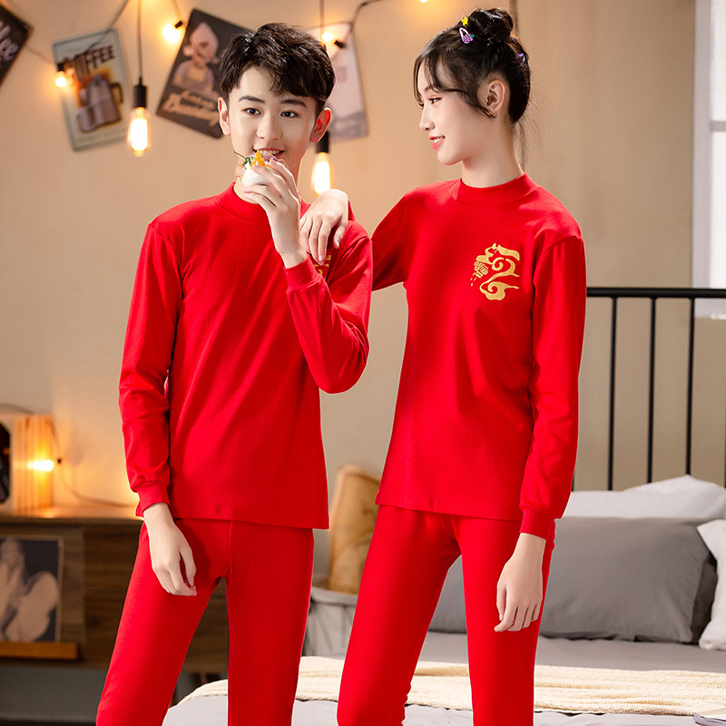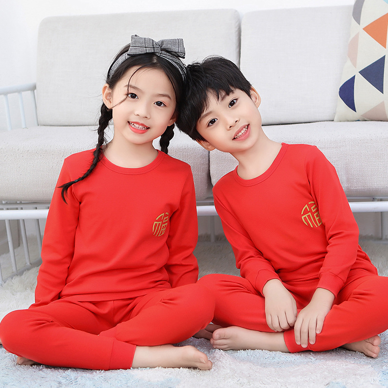 벌새 레드 어린이 순면 속옷 10 대 남녀 아동복 구정 붉은 가을 옷과 바지 세트