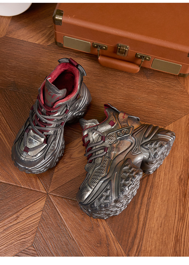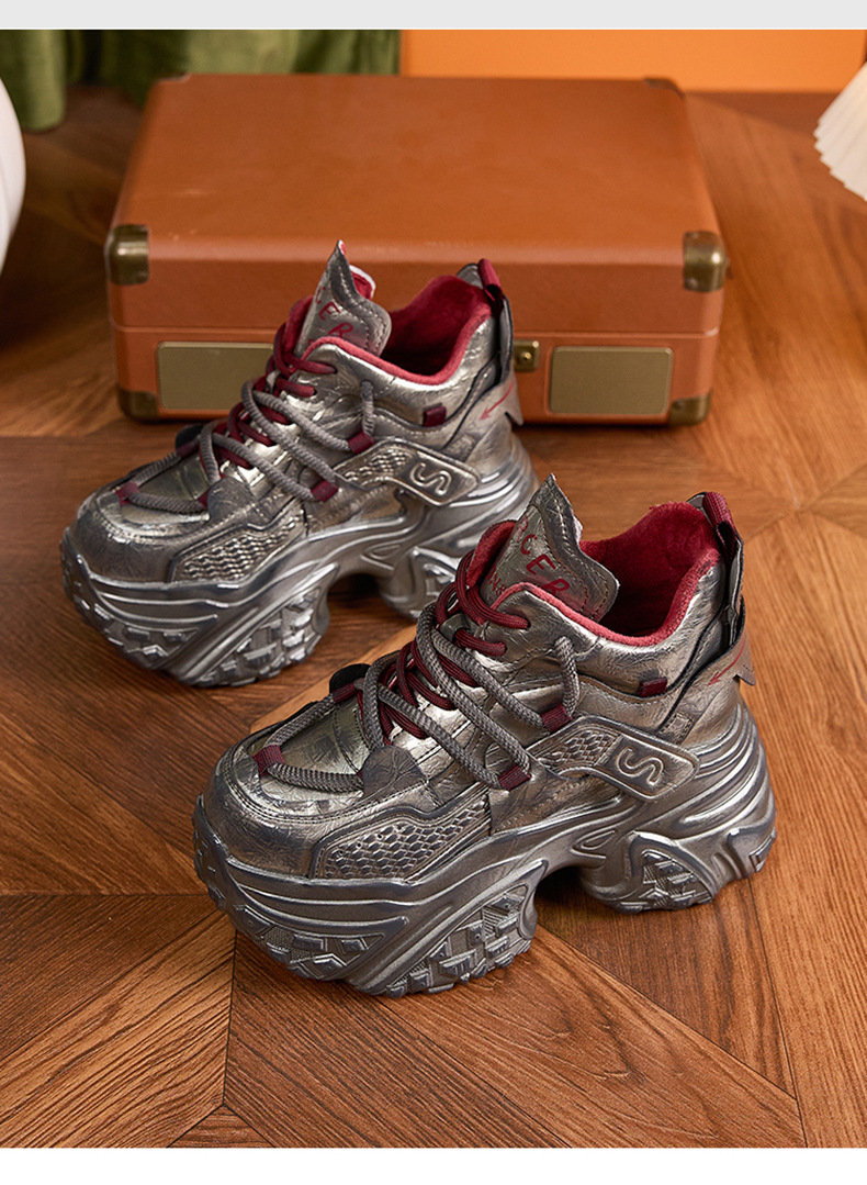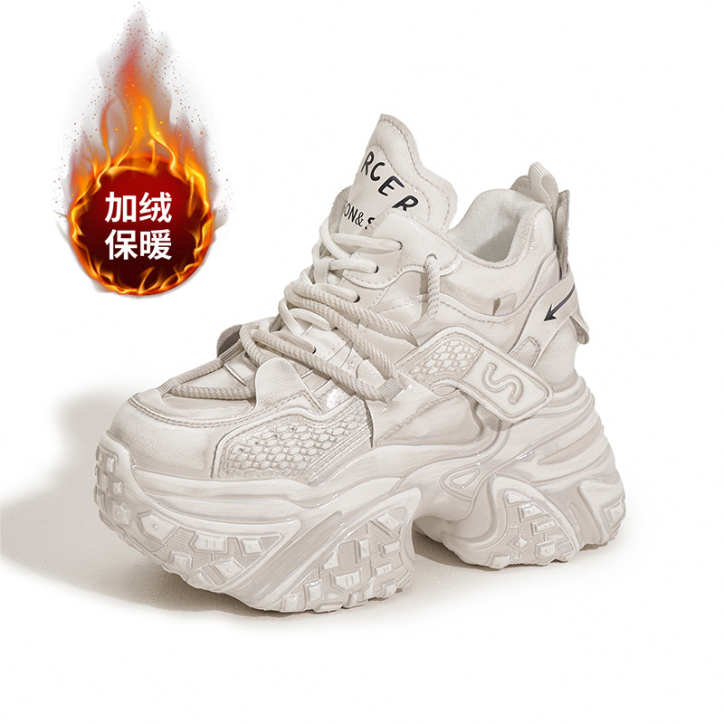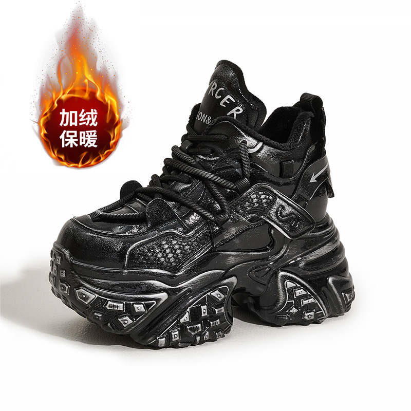 두꺼운 밑창의 여성용 아빠 신발 2025 겨울 신상품 플러스 벨벳 안감 따뜻한 하이탑 신발 다용도 컬러풀 트렌디 신발 내부 키높이 여성 신발